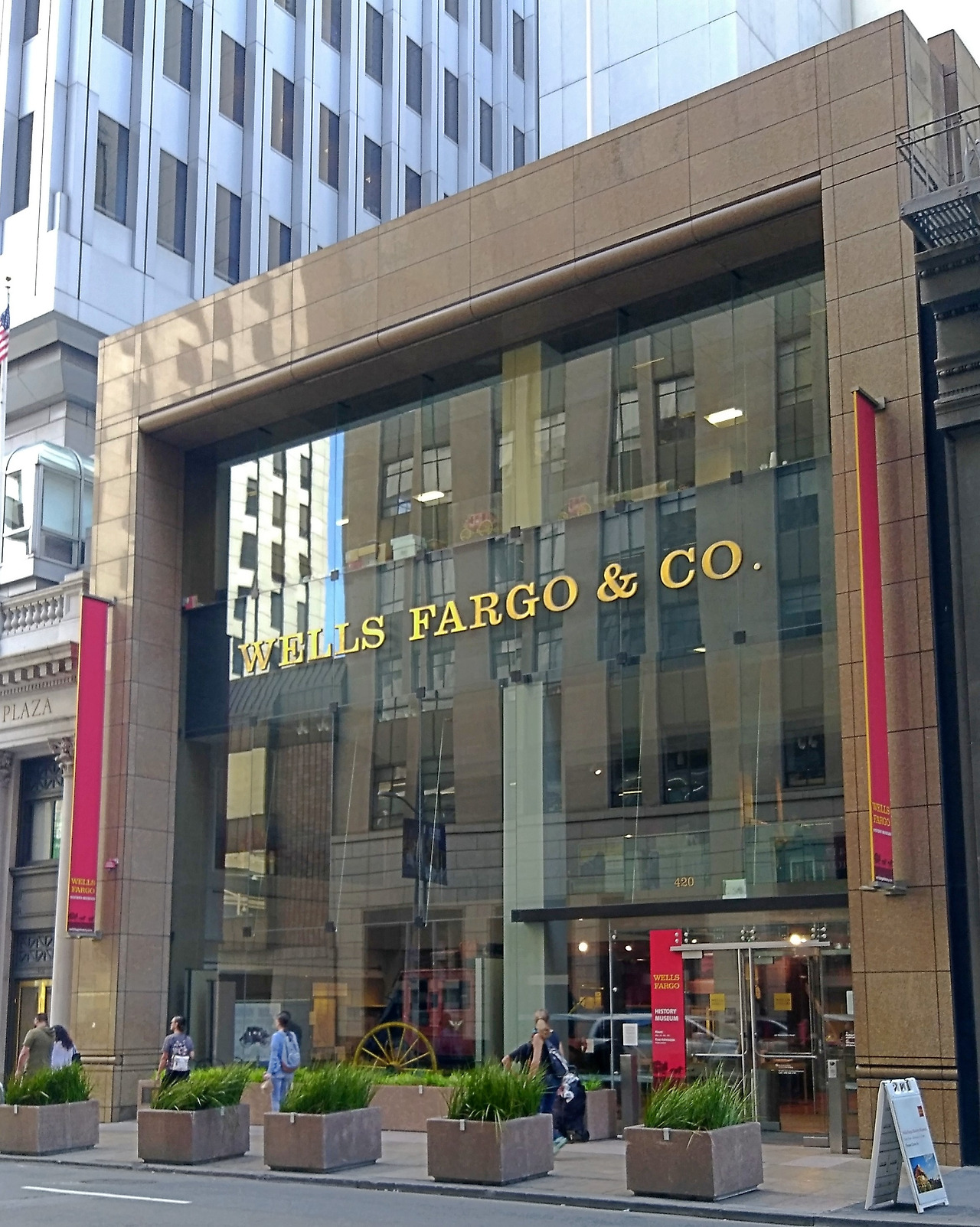 새크라멘토를 중심으로 캘리포니아 주 일대에 골드러시가 일어나자 금을 운반하고 현금을 유통하는 사업이 필요하게 되었고, 이를 일찌감치 캐치한 헨리 웰스와 윌리엄 파고는 각자의 성을 따서 웰스파고 은행(Wells Fargo & CO., 줄여서 WFC)을 설립했다. 그 본사가 바로 샌프란시스코의 금융가(Financial District)에 있으며, 통유리로 고급스럽게 지어진 건물 1층과 2층에는 골드러시 시절에 현금을 운반했던 마차와 저울, 장부 같은 것들이 전시되어 있다.