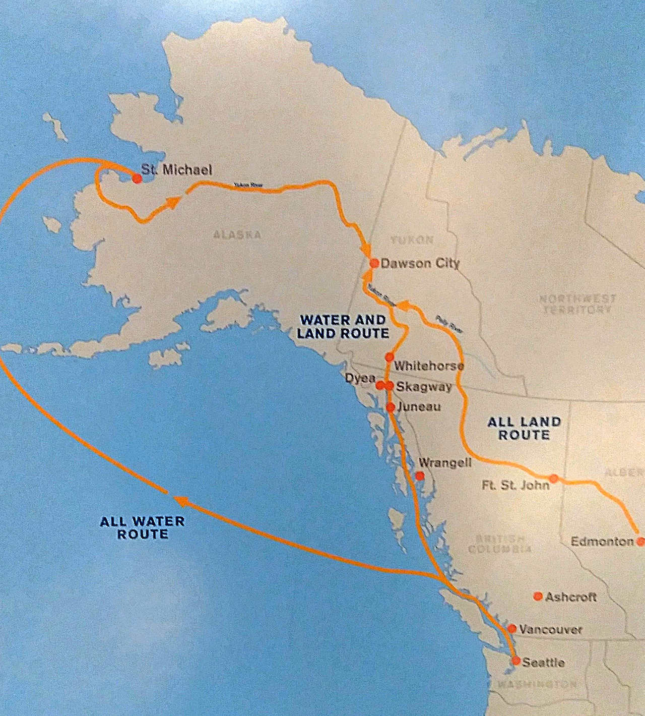 1896년 캐나다 북서부 유콘 주의 클론다이크(Klondike) 지역에서 낚시를 하던 세 사람이 강에서 금을 발견한 것이다. 이 소식이 전해진 지 열흘도 채 되지 않아 시애틀에서는 약 1,500명이 북쪽으로 몰려들었고, 샌프란시스코에서는 북부로 가는 배표가 매진되어 암시장에서 천 달러에 배표가 거래되기도 했다. 특히 시애틀은 캐나다로 가는 마지막 관문이어서 자연스럽게 숙박, 교통, 식료품 등 여행 관련 산업이 번영을 누리게 되었는데, 골드러시가 막 시작된 1896~7년 사이 시애틀 시의 수입은 기존의 30만 달러에서 2,500만 달러까지 치솟았다고 한다.
