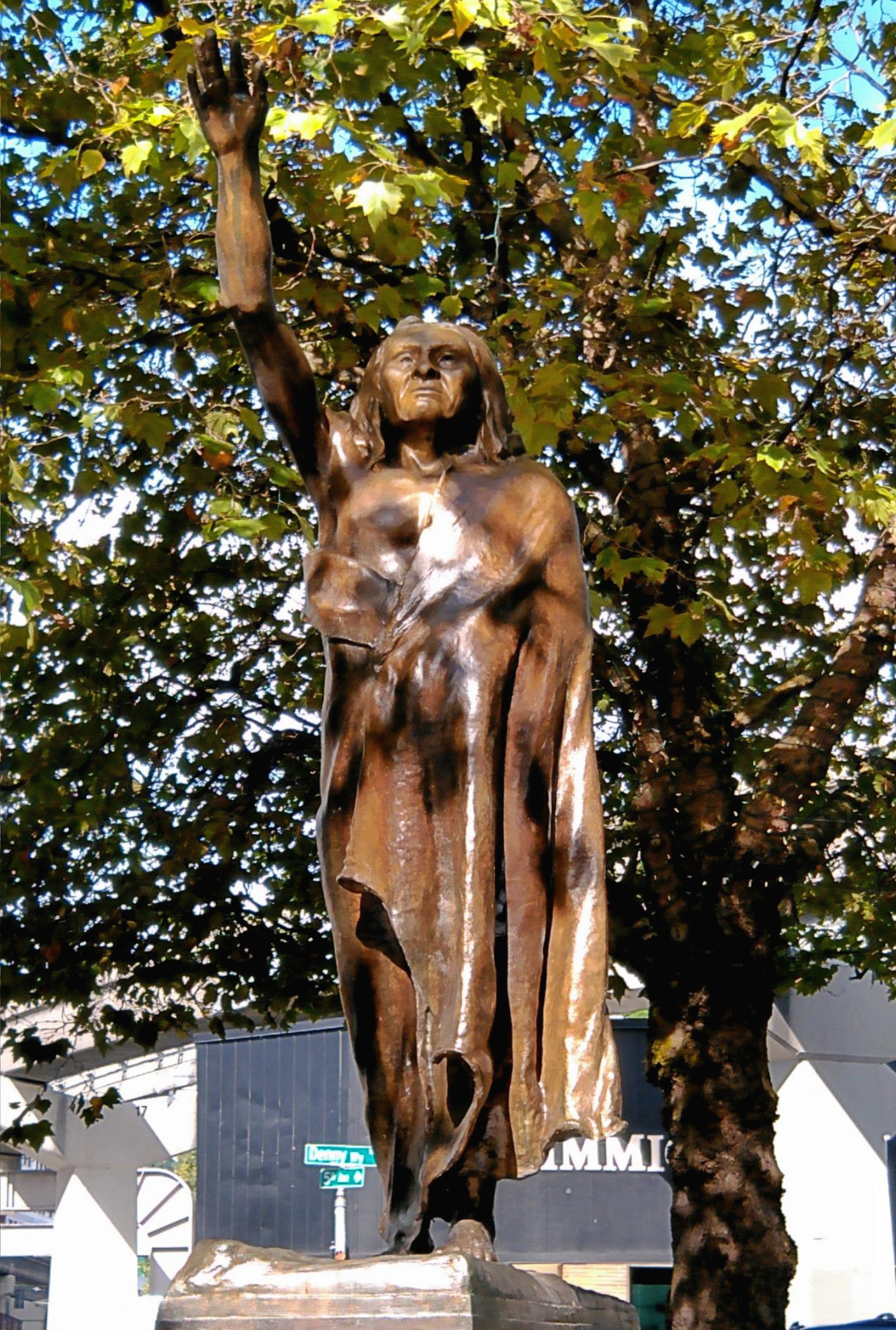 그럼에도 시애틀 시에는 그 이름의 기원이 되는 추장님의 동상이 곳곳에 세워져 있다. 또한 워싱턴 주의 스쿼미쉬(Squamish)라는 곳에 위치한 그의 무덤에는 보이스카우트들이 매년 기념식도 거행하고 있으며, 알래스카 항공의 꼬리에 그려진 인자한 에스키모인마저 시애틀 추장이라는 소문까지 돌고 있다. 이쯤 되면 시애틀은 거의 추장님이 스토리텔링으로 먹여 살리는 도시가 아닌지.