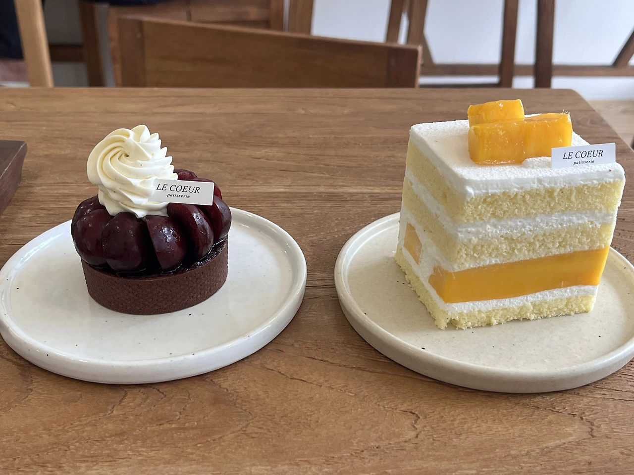 엄마와 맛집을 갔을 때 엄마가 그 음식이 입에 맞는지를 확인하는 기준은 사실 간단하다. 그건 바로 그릇이 닳을 정도로 싹싹 긁어 드실 때다. 그럼 내 컨펌 없이 감행한 도전의 결과는 어떠했을까? 도전의 감행은 꽤 성공적이었다. 그 디저트 가게에 들어가 예약한 망고 조각 케이크와 체리 초코 타르트를 한 입 베어먹자마자 엄마와 나는 눈이 휘둥그레졌기 때문이다.