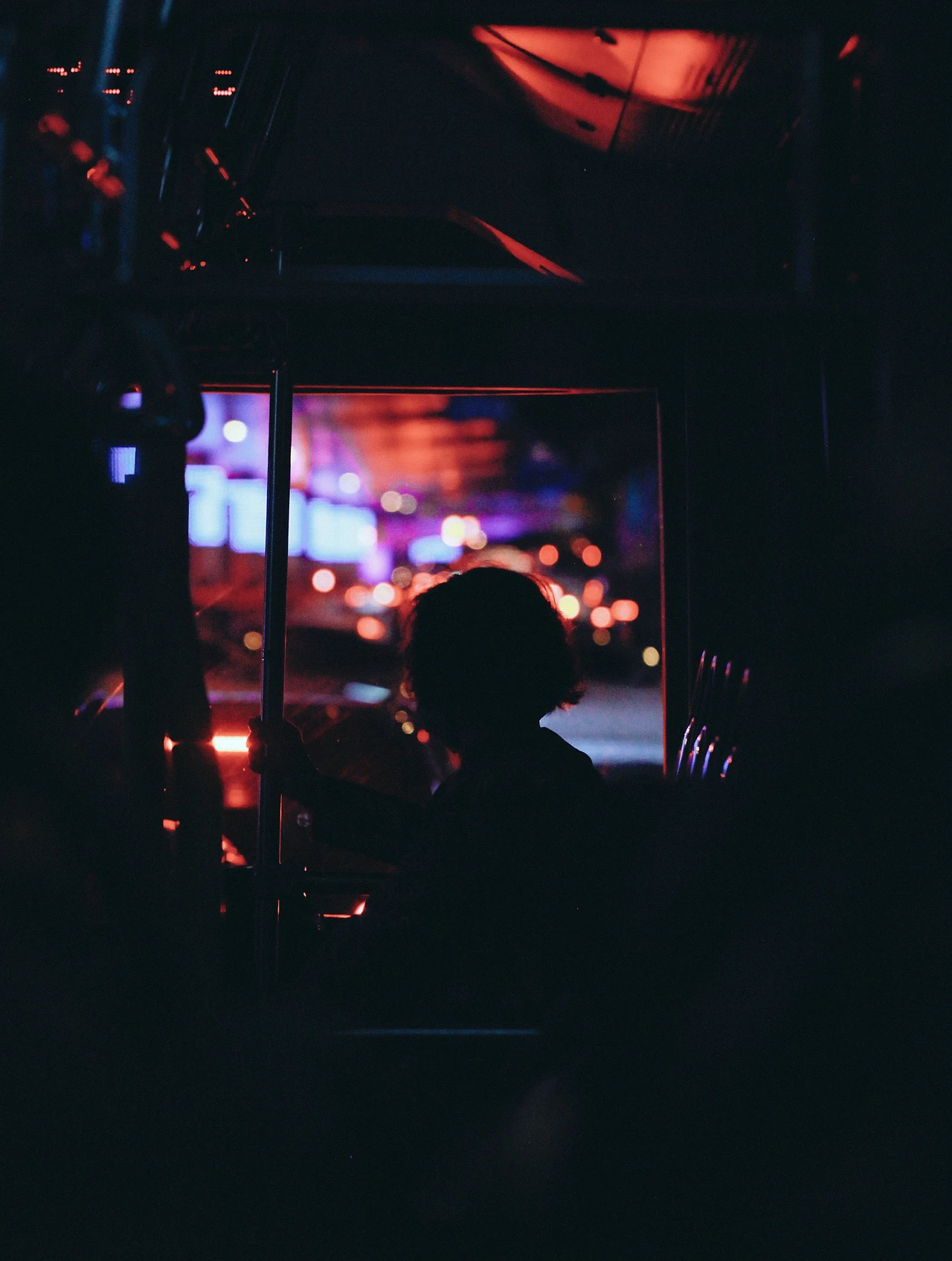 자리를 잡고 앉으니, 창밖 가로등 불빛이 천천히 흘러간다.