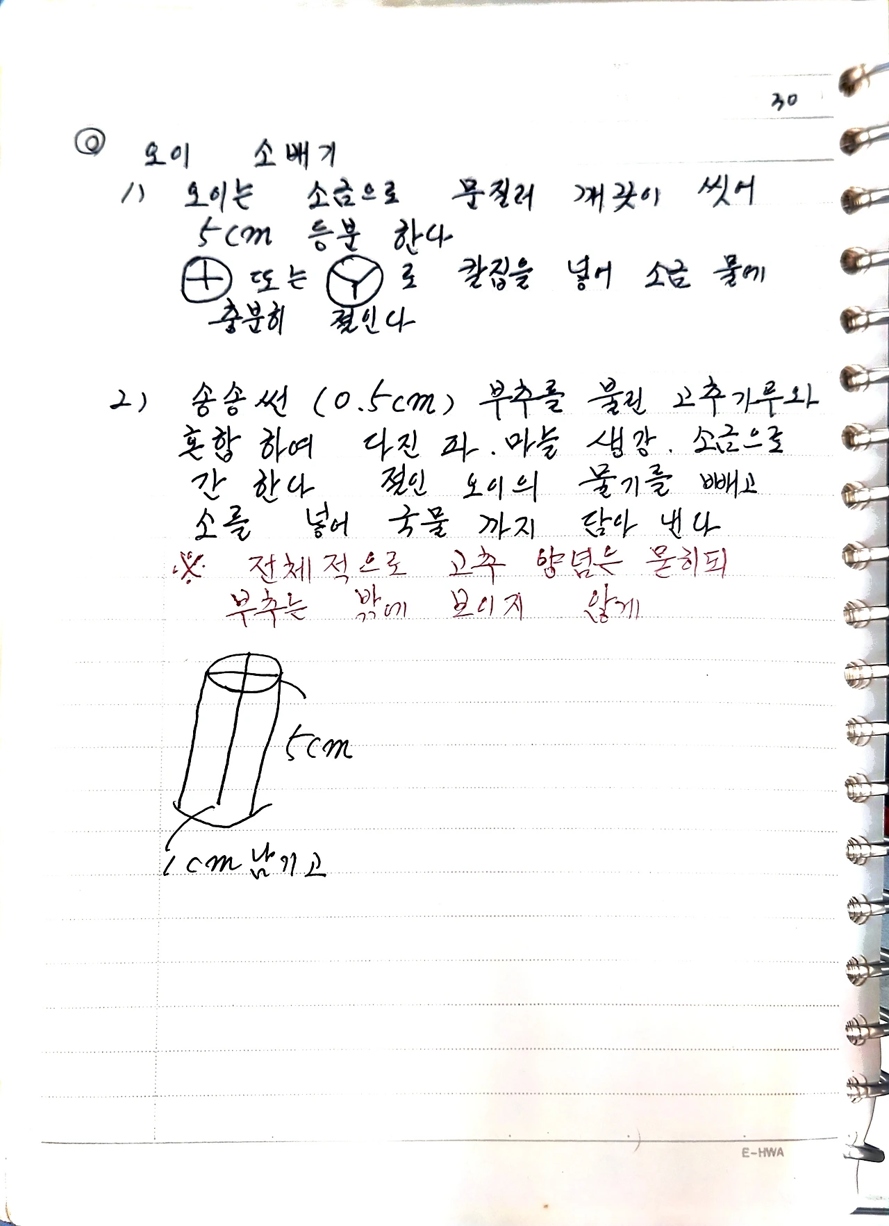 1) 오이는 소금으로 문질러 깨끗이 씻어