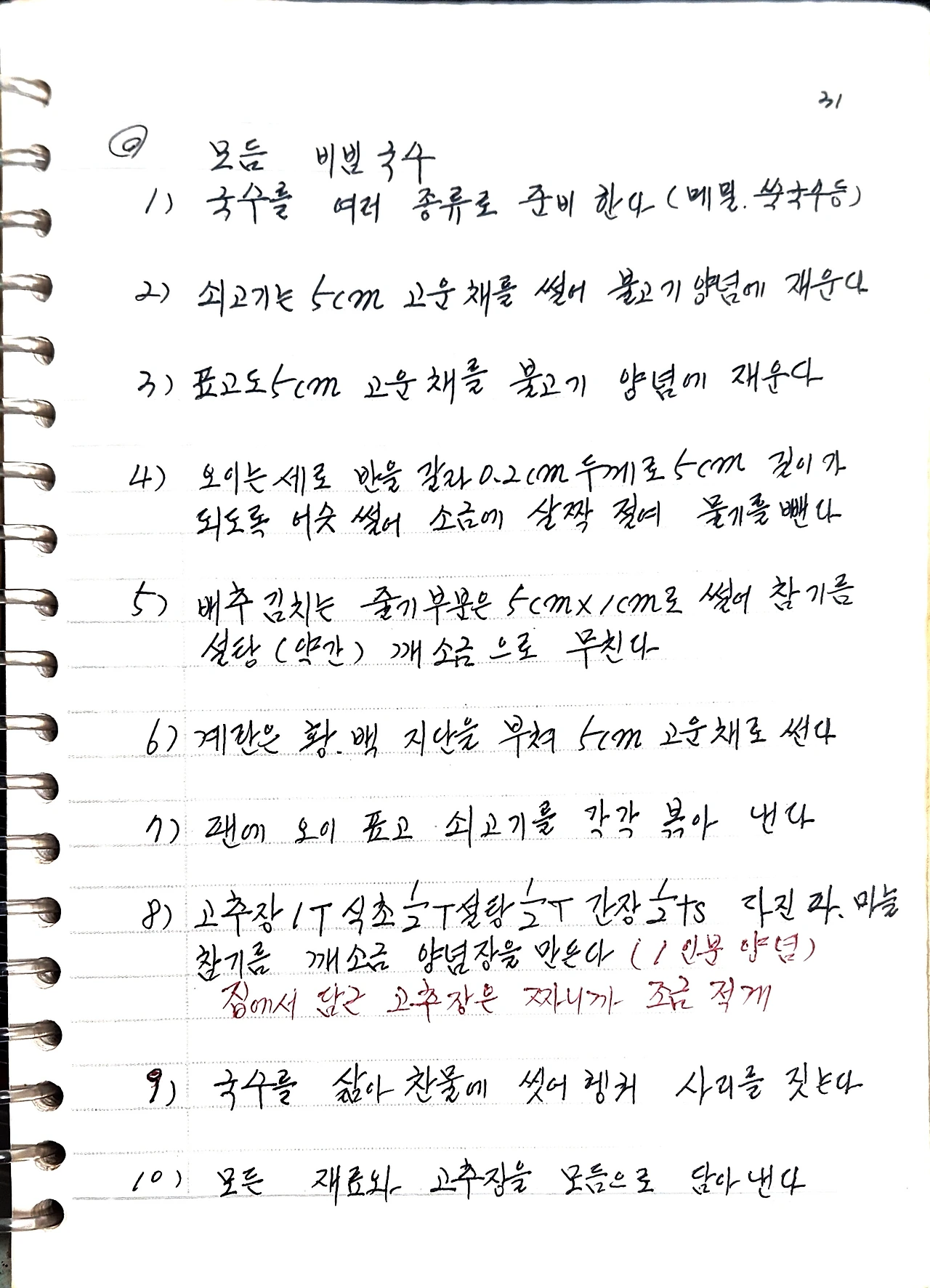 8) 고추장 1T, 식초 1/2T, 설탕 1/2T, 간장 1/2ts,