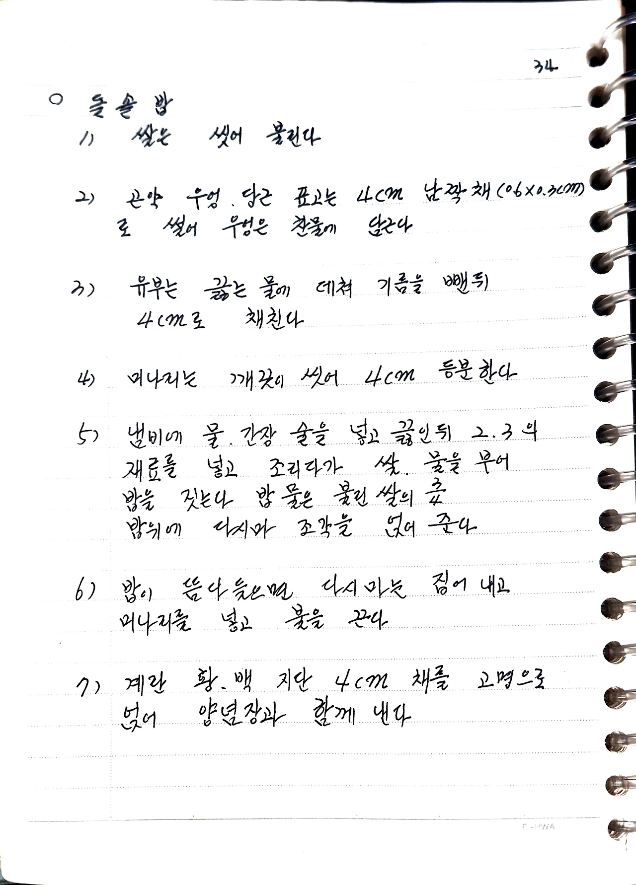 밥을 짓는다. 밥물은 불린 쌀의 3/4
