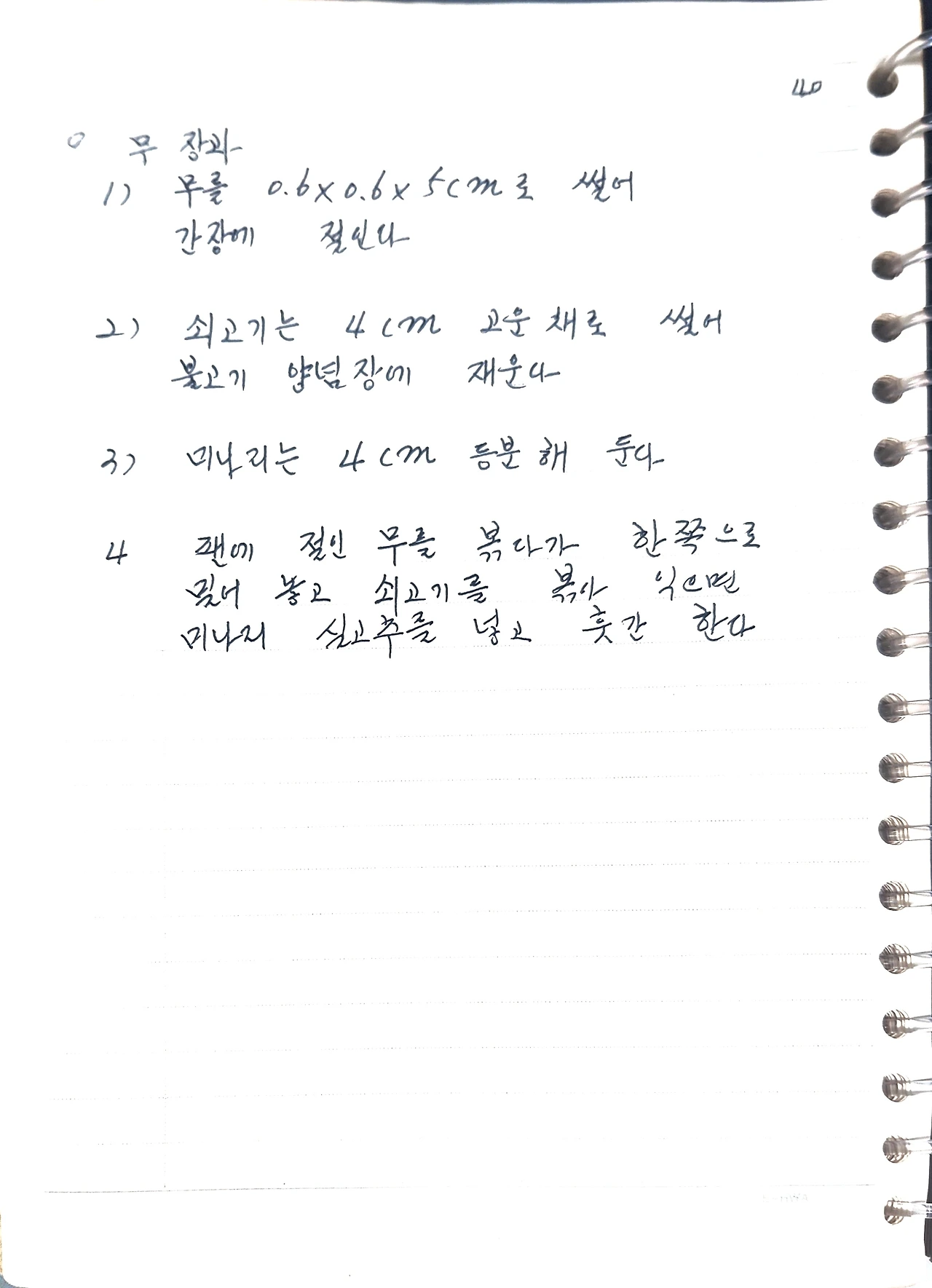 3) 미나리는 4cm 등분 해 둔다.