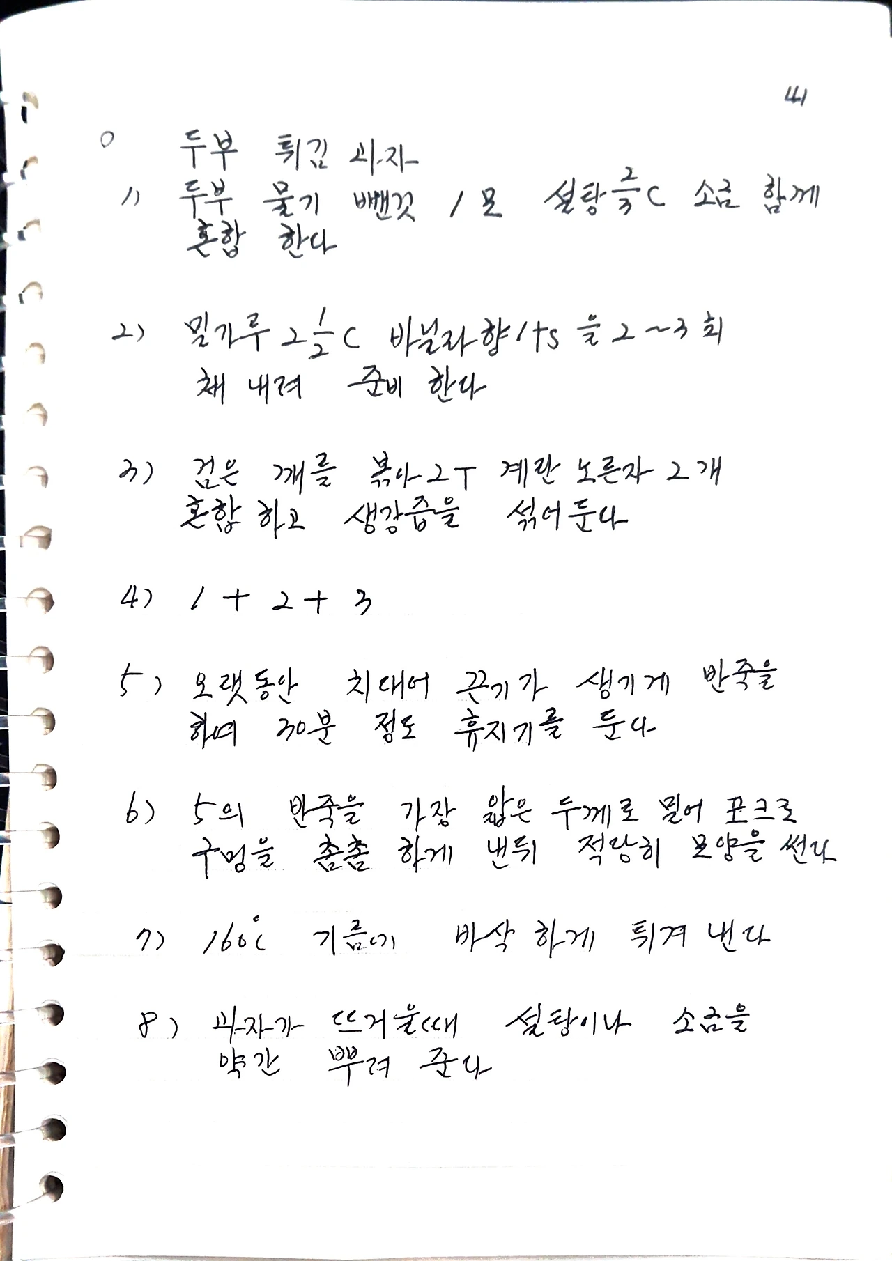 1) 두부 물기 뺀것 1모, 설탕 2/3C, 소금 함께