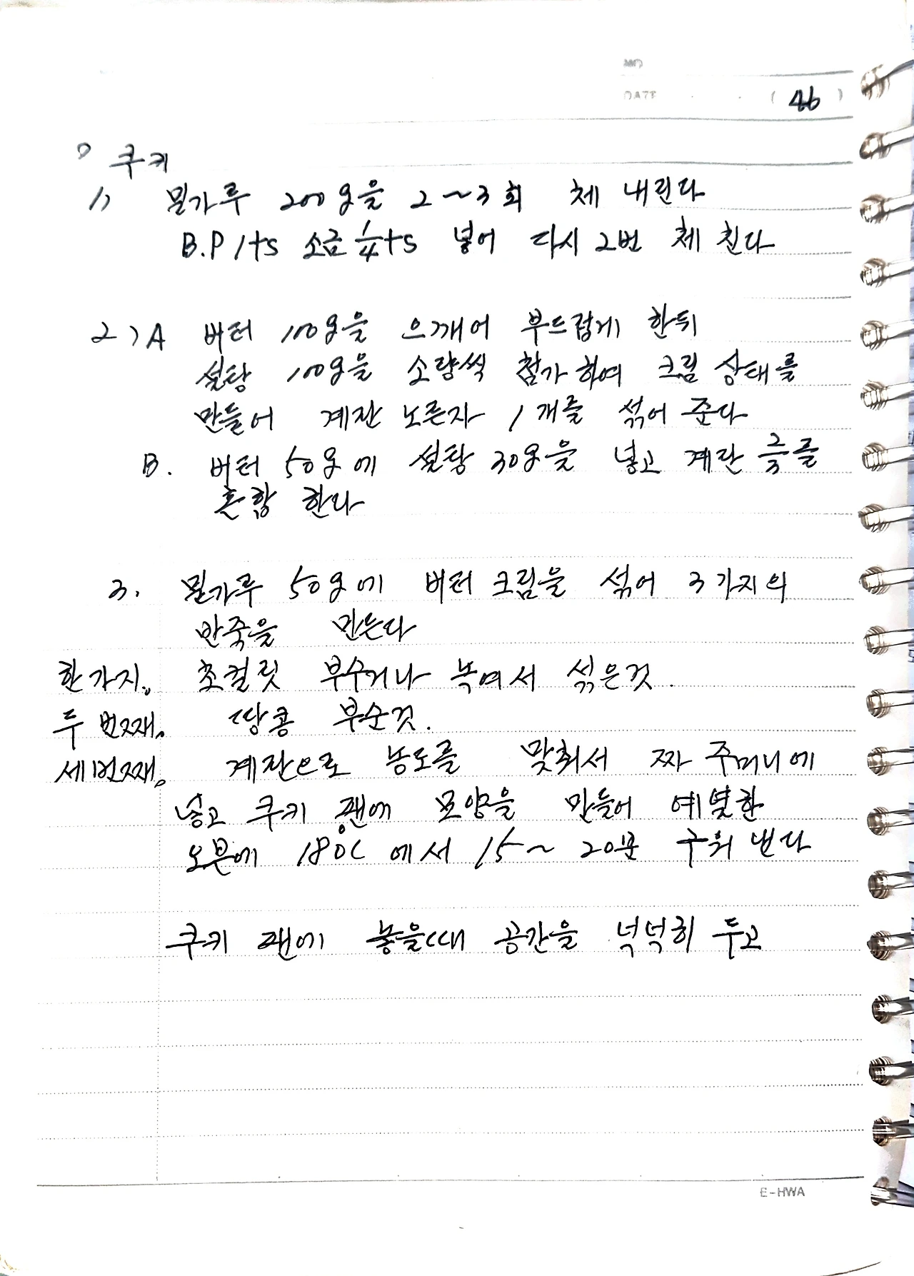 B. 버터 50g에 설탕 30g을 넣고 계란 2/3를