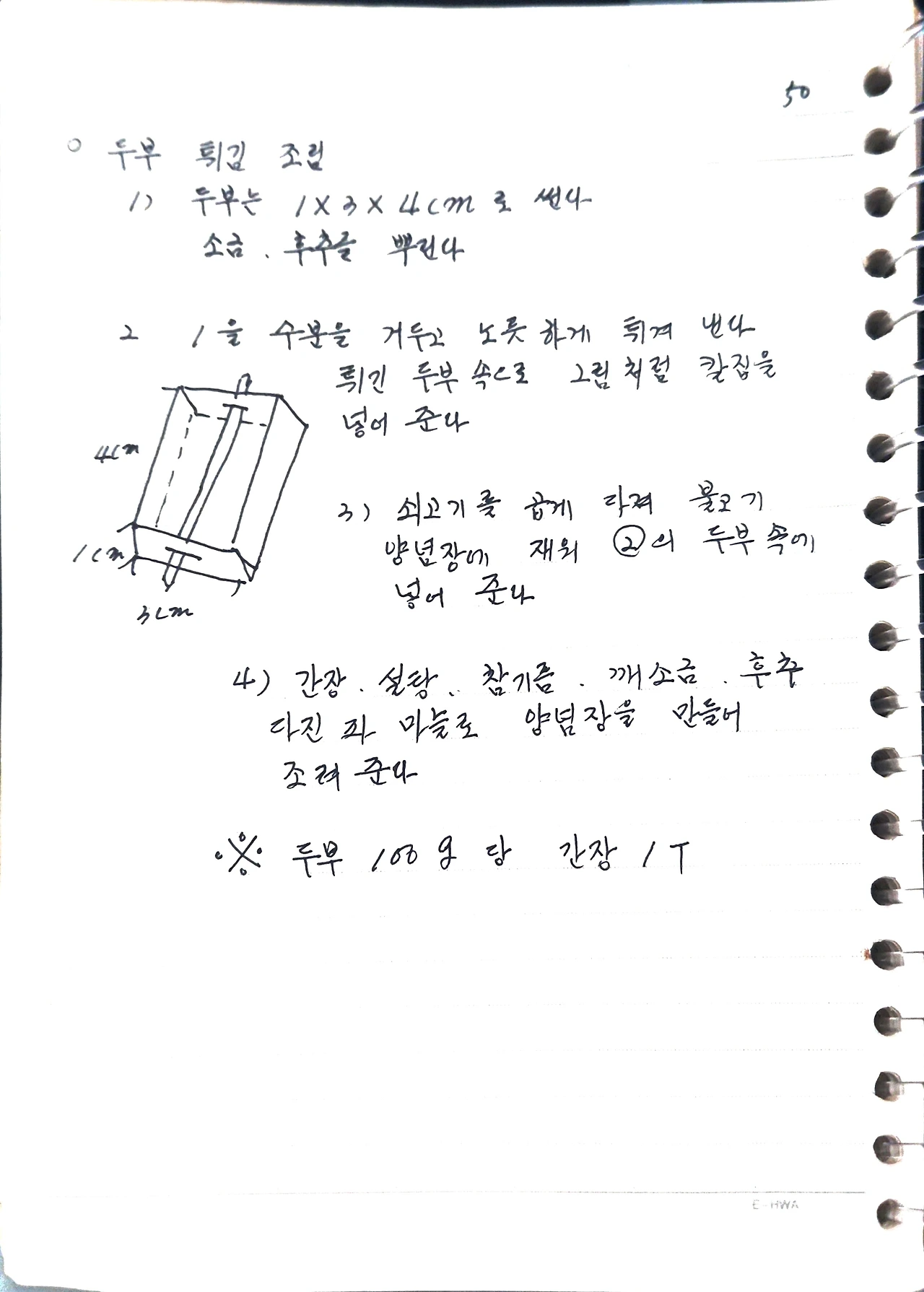 ※ 두부 100g당 간장 1T