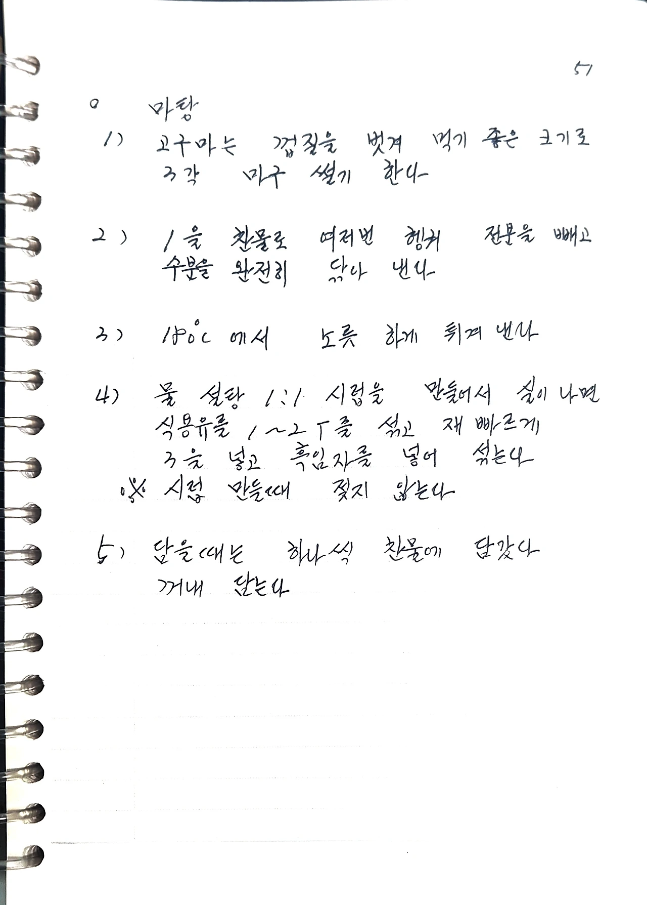 3) 180℃에서 노릇하게 튀겨낸다.