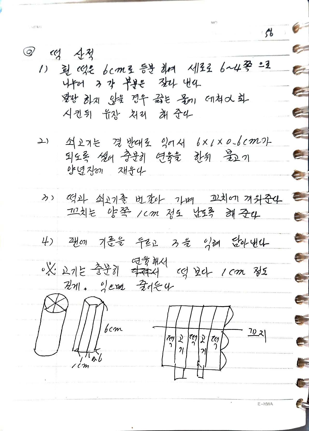 2) 쇠고기는 결 반대로 익어서 6*1*0.6cm가