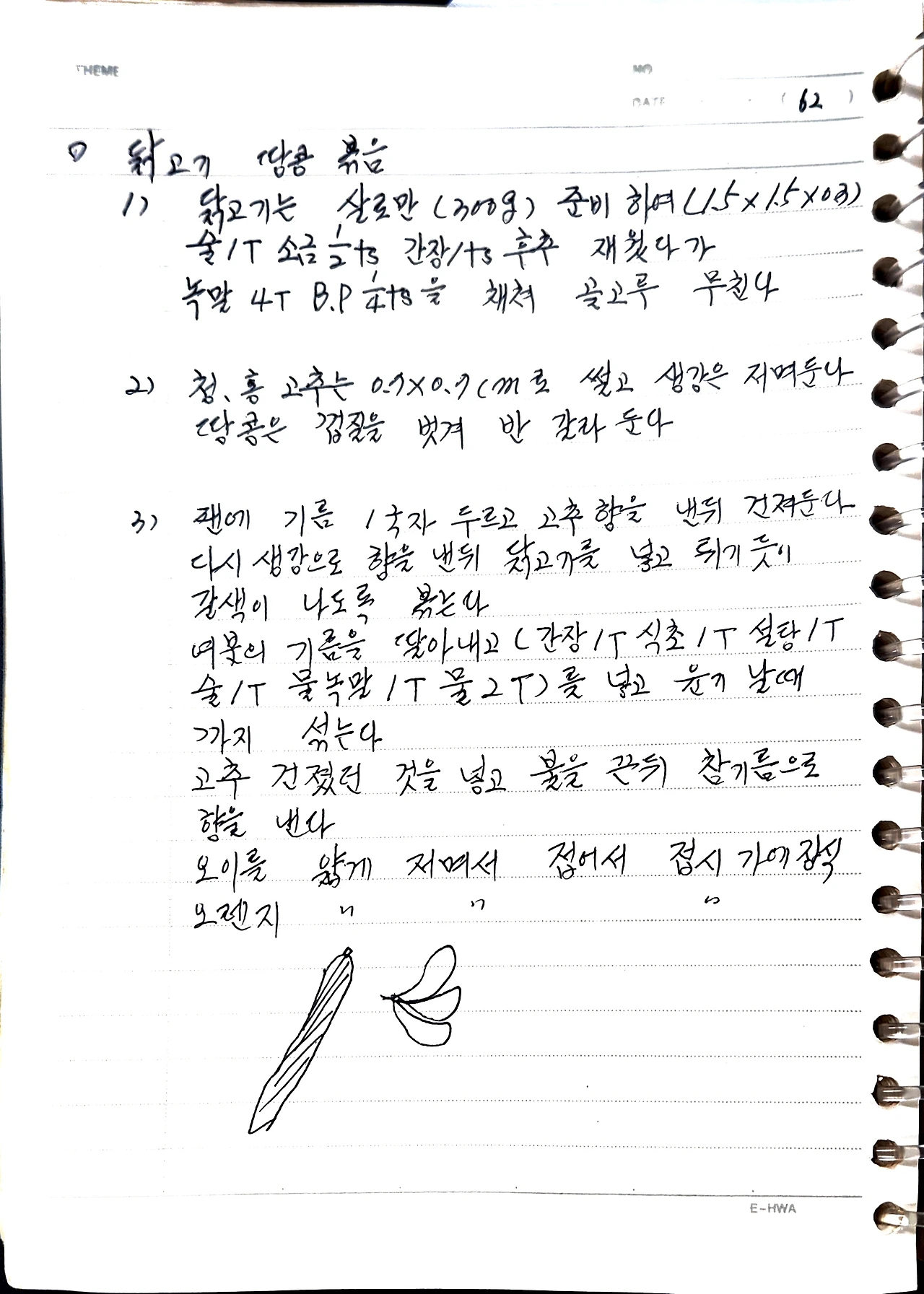 술 1T, 소금 1/2ts, 간장 1ts, 후추 재웠다가