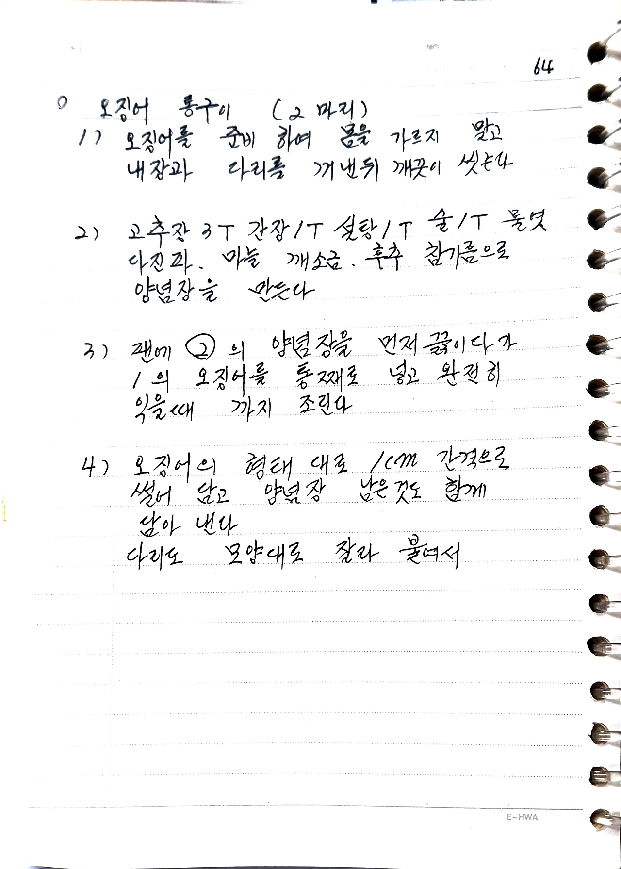 2) 고추장 3T, 간장 1T, 설탕 1T, 술 1T, 물엿,