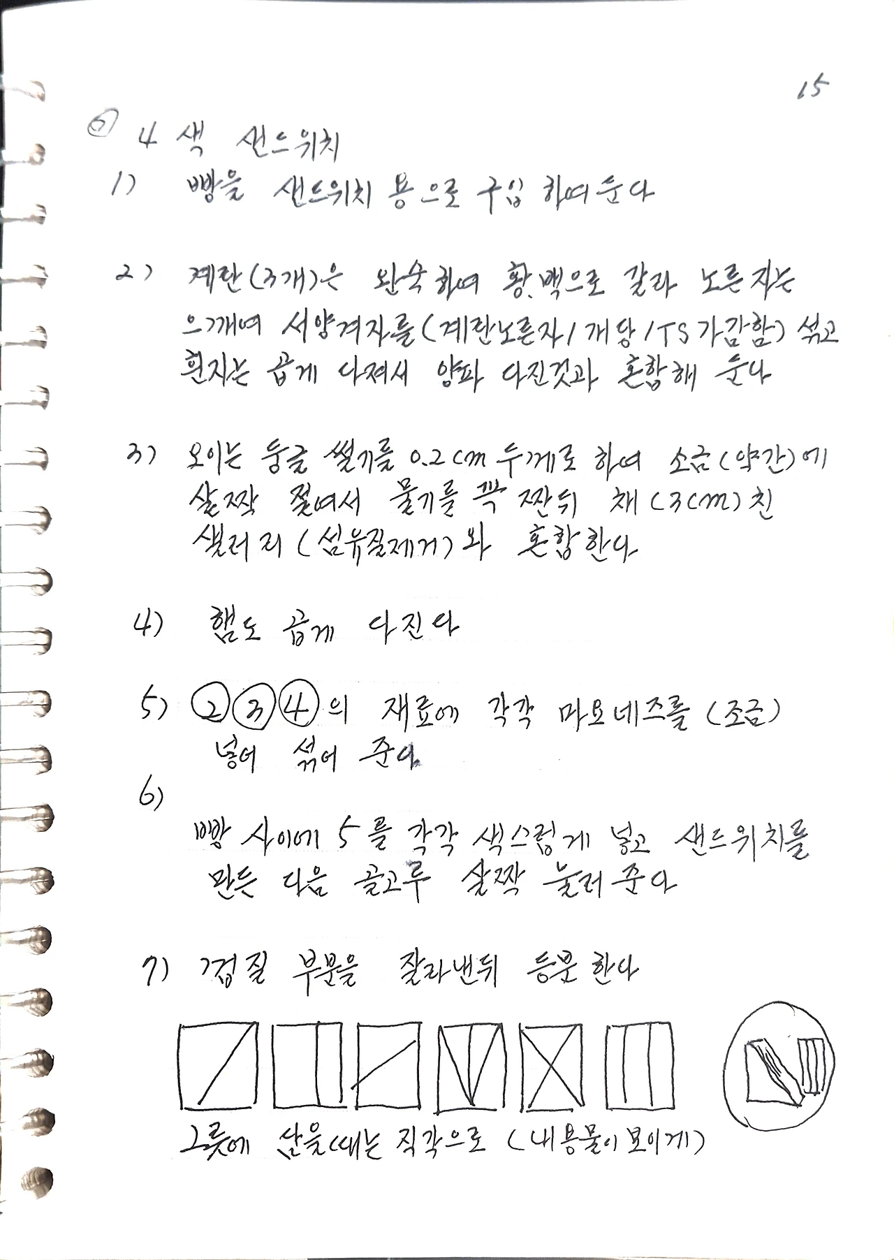 6) 빵 사이에 ⑤를 각각 색스럽게 넣고 샌드위치를