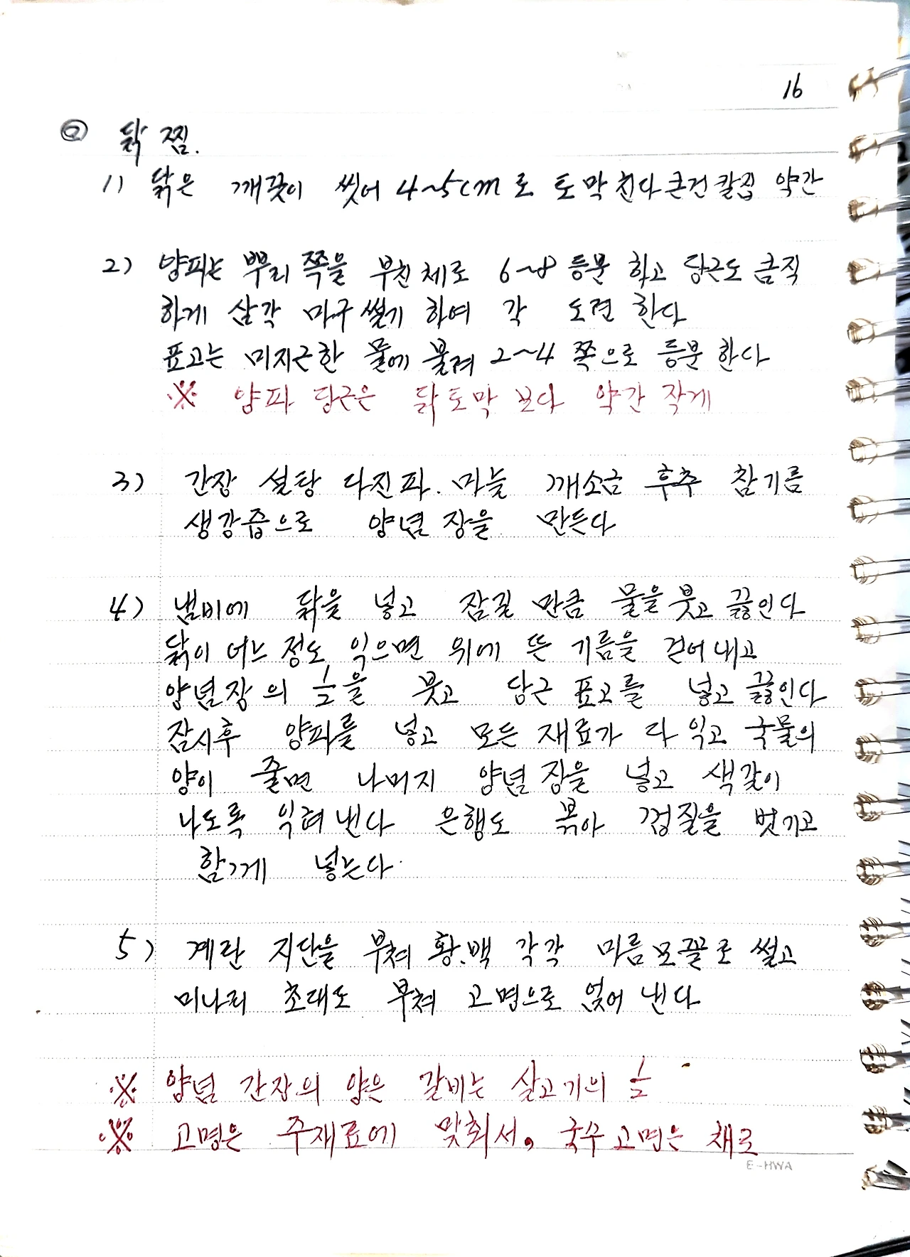 1) 닭은 깨끗이 씻어 4~5cm로 토막친다. 큰건 칼집 약간.