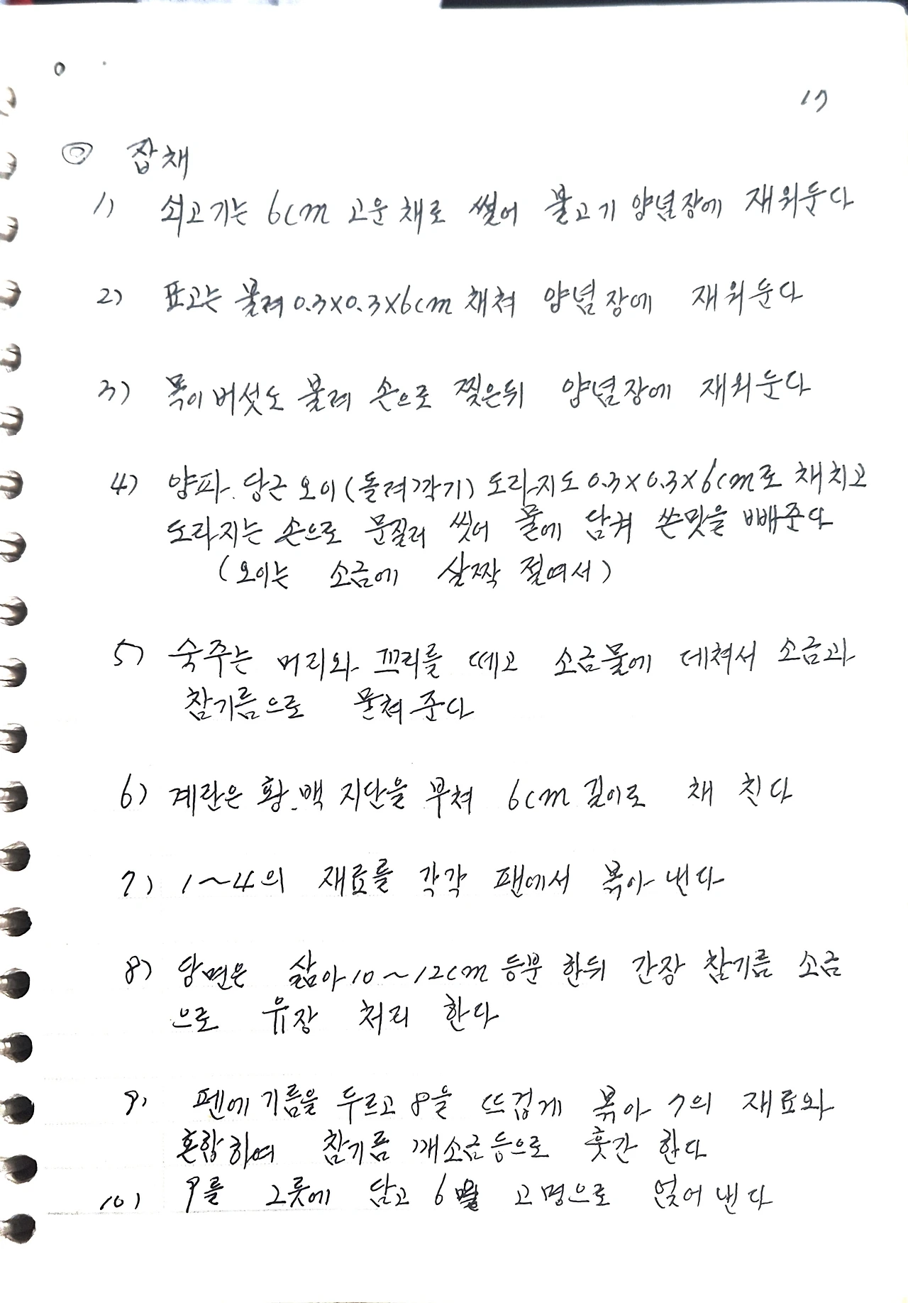 2) 표고는 불려 0.3*0.3*6cm 채쳐 양념장에 재워둔다.