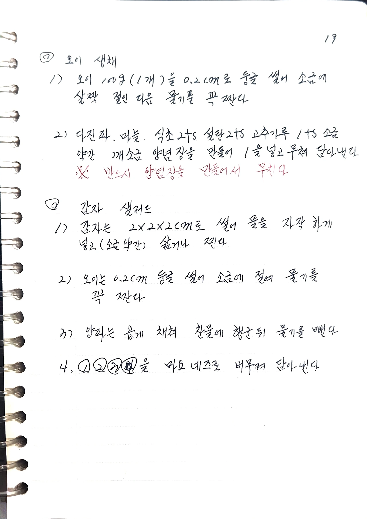 2) 오이는 0.2cm 둥글 썰어 소금에 절여 물기를