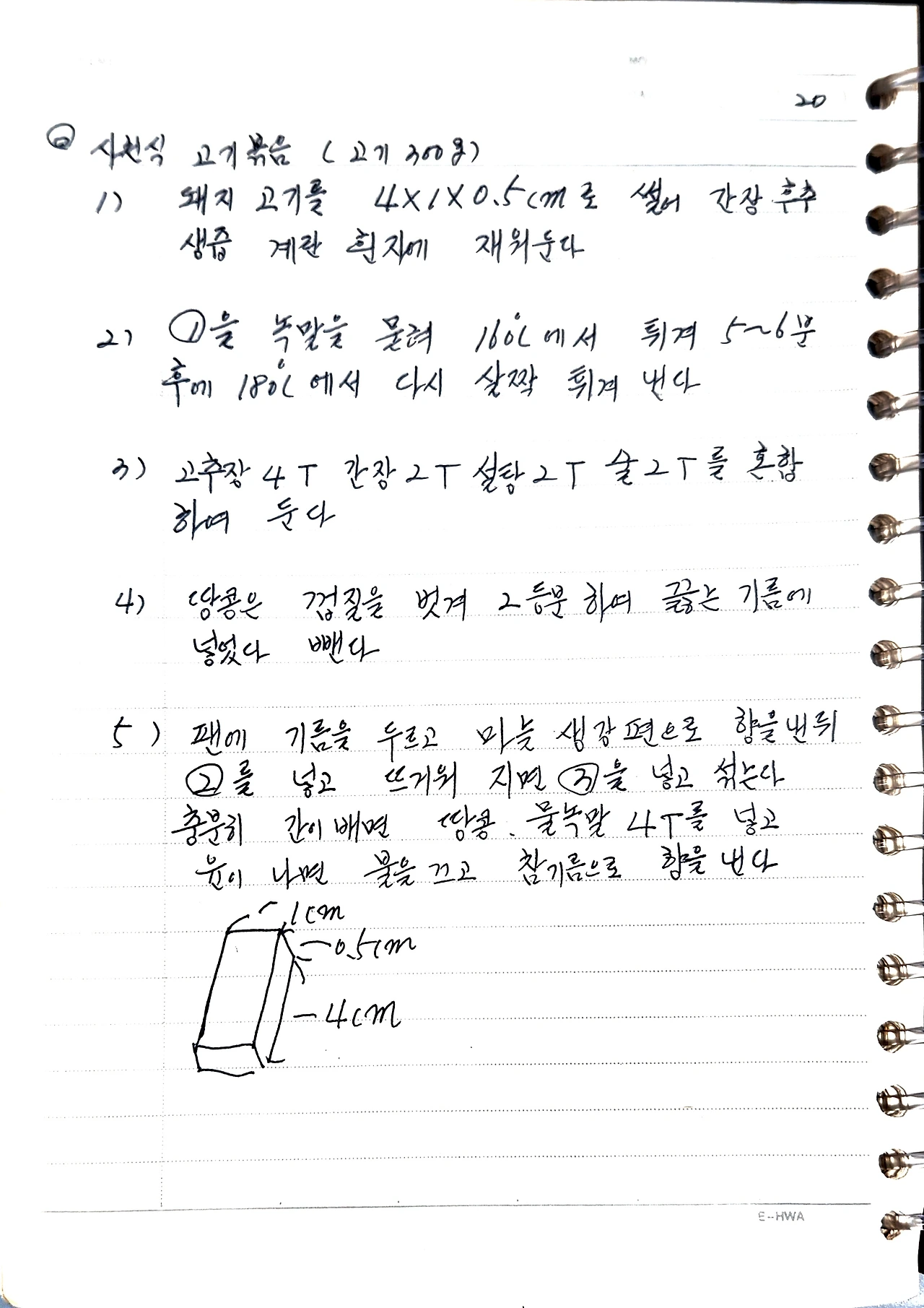 2) ①을 녹말을 묻혀 160℃에서 튀겨 5~6분