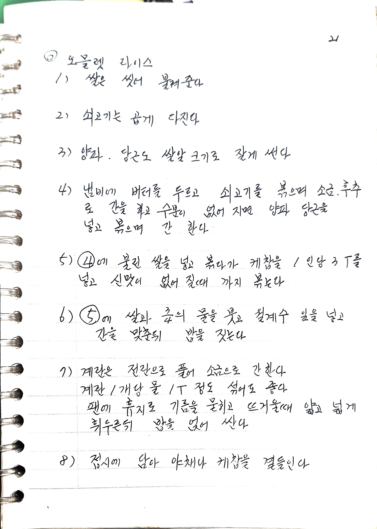 7) 계란은 전란으로 풀어 소금으로 간한다.