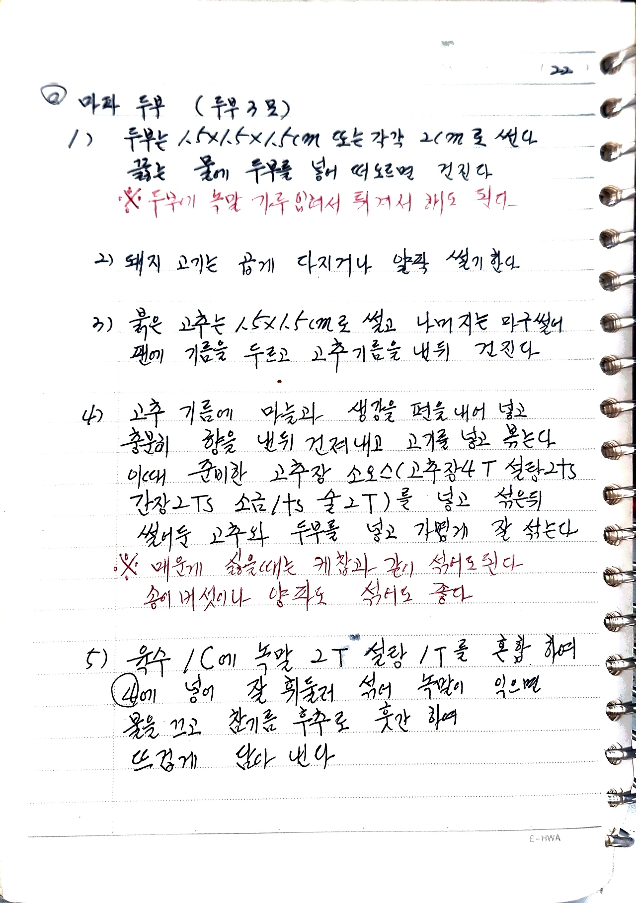 간장 2TS, 소금 1ts, 술 2T)를 넣고 섞은 뒤
