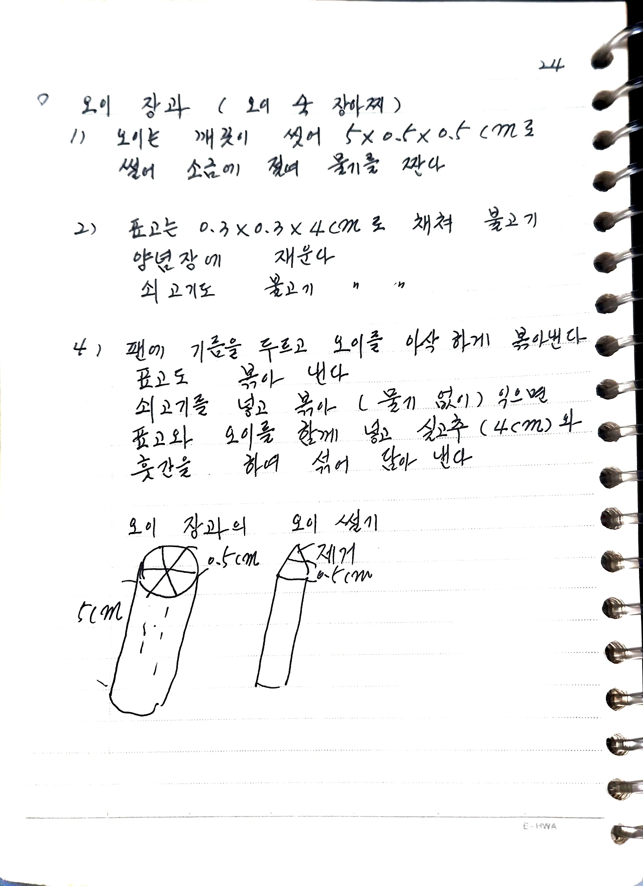 1) 오이는 깨끗이 씻어 5*0.5*0.5cm로