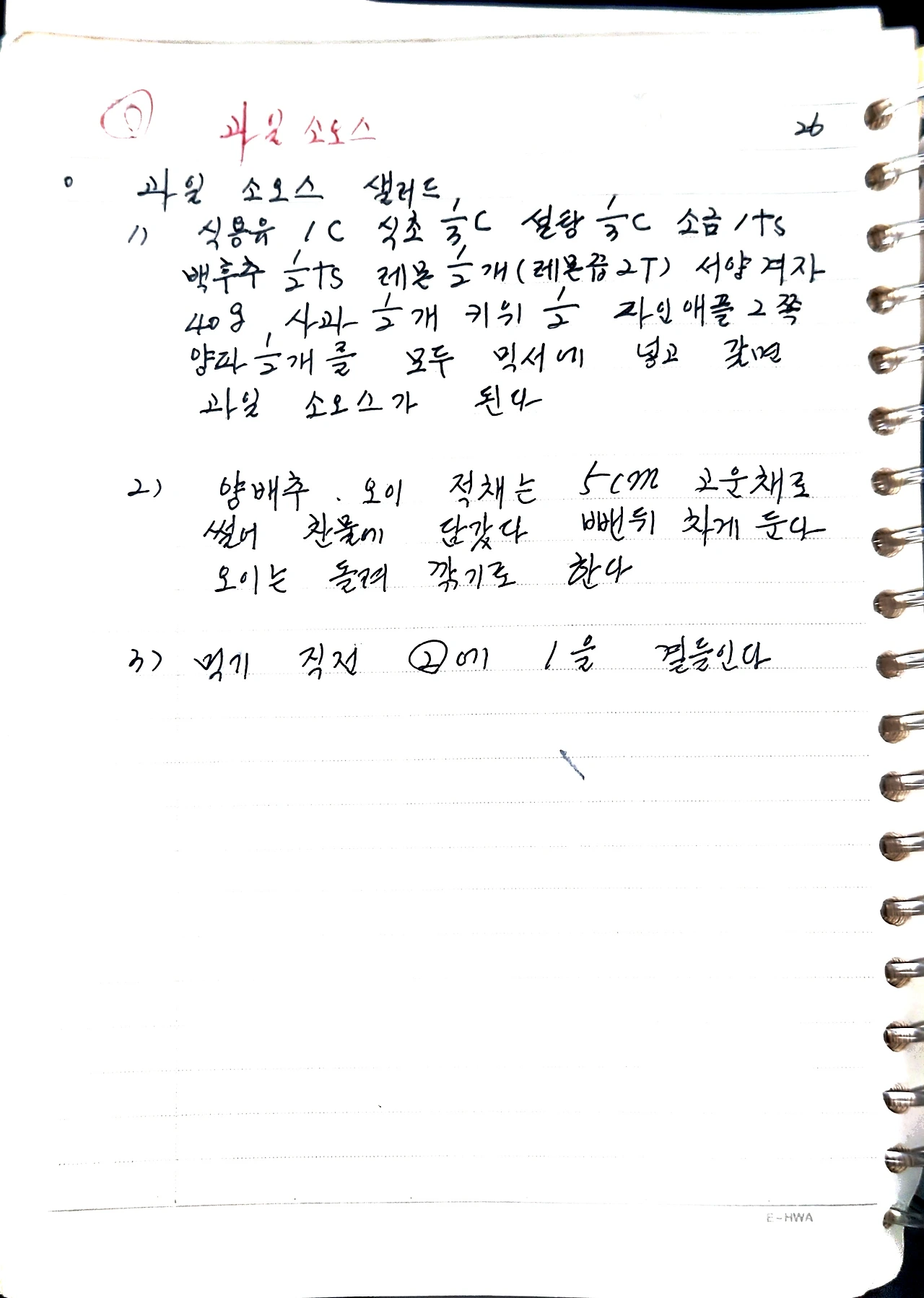1) 식용유 1C, 식초 1/3C, 설탕 1/3C, 소금 1ts,