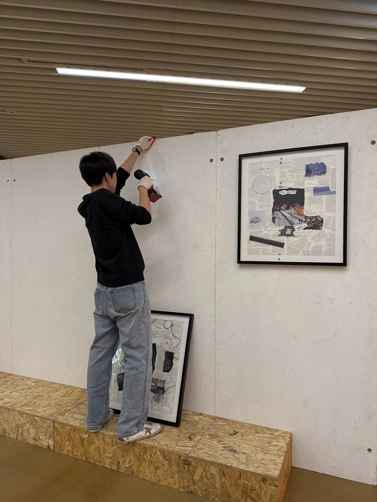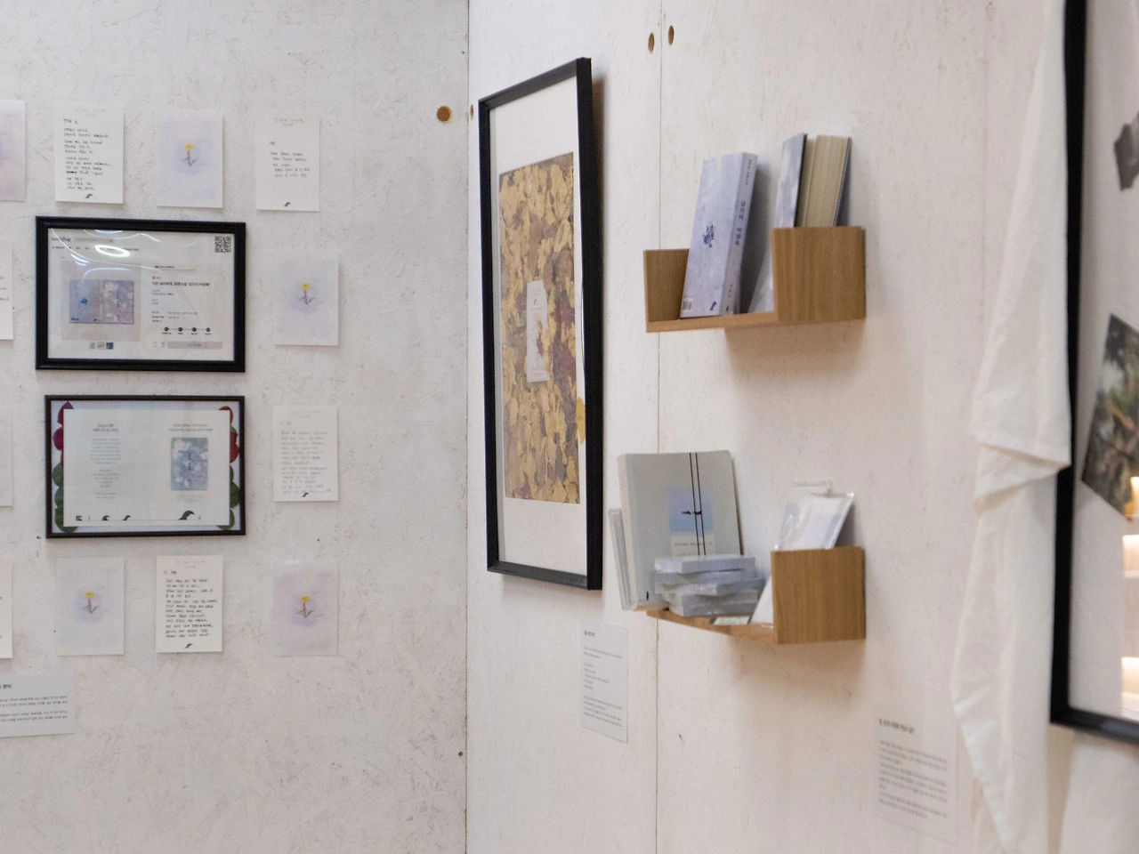 전시 내용을 보여줄 수 있는 여러 방안을 고민하다, 결국 막내인 승재의 활약으로 선유문화공방에서 큰 도움을 받아 파티션을 구했다. 파티션에는 액자를 걸고, 액자 안에 다양한 방식으로 글과 사진을 채우기로 했다. 선반 등을 조립해 오브제를 두기도 하였다.