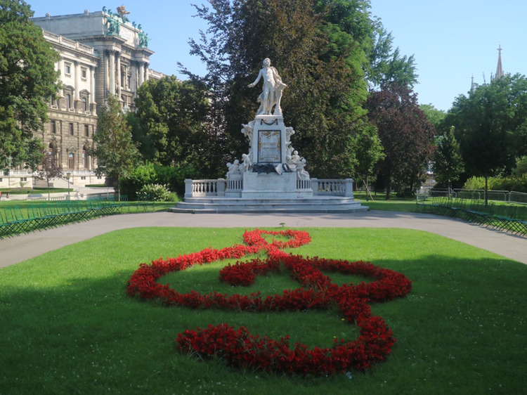 왕궁정원에 갔을 때 모차르트의 동상을 찾았다. 동상 앞에 작은 정원이 있었는데 높은음자리표 모양이 예쁜 꽃으로 꾸며져 있었다.