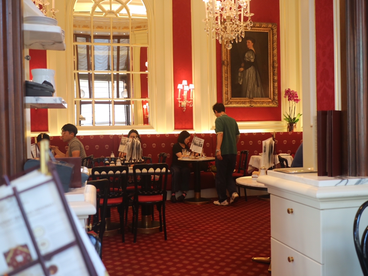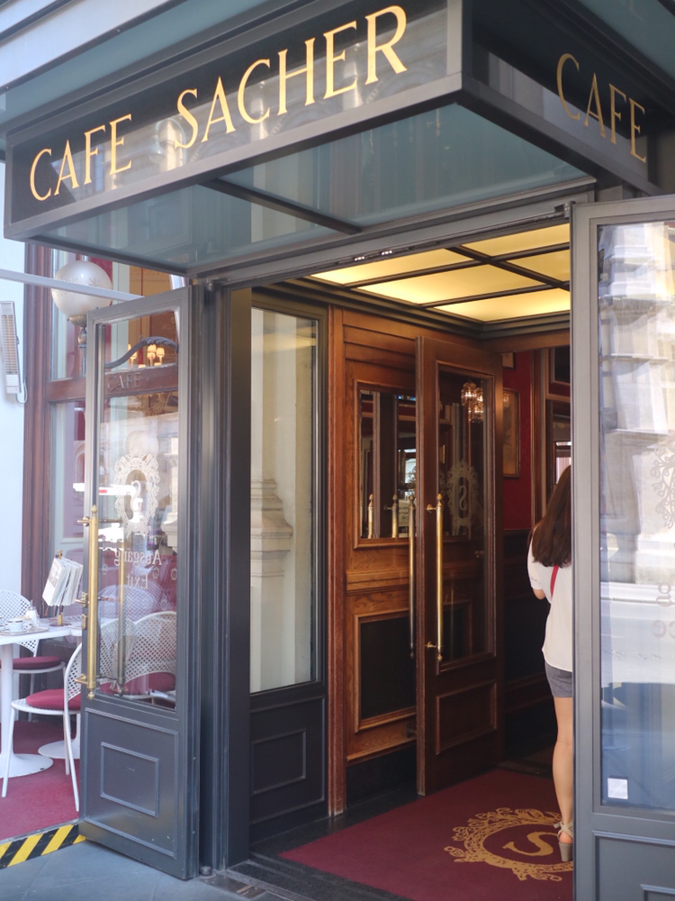 두 번째로 찾은 곳이 바로 Demel의 자허 토르테의 원조라고 하는 Cafe Sacher이다. Hotel Sacher의 1층에 있는 카페라 외관도 분위기도 고급스럽다. 1층 전체가 카페이고 한쪽 면의 케른트너 거리에는 외부 테이블이 많다.