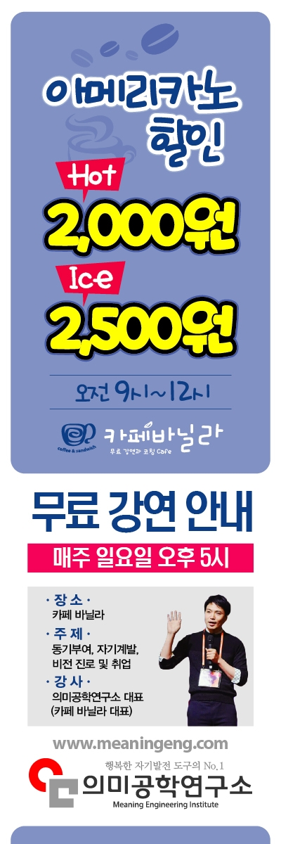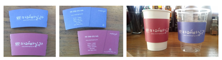 테이크 아웃을 위한 종이컵과 플라스틱 컵이 있다. 그리고 컵 홀더가 있다. 기존의 컵 홀더는 골판지 색의 무지 홀더였다. 여기에 카페 바닐라 로고 도장을 찍어 사용했다. 단가 문제로 무지로 된 컵 홀더를 많이 사용한다. 그러나 나는 작은 부분이지만 많은 영향을 미친다고 생각했다. 시각적인 부분에서 이왕이면 예쁜 컵 홀더가 심리적으로 음료를 더 맛있게 느낄 수 있게 한다고 본다. 또한 컵 홀더를 통해 카페 홍보를 할 수 있다. 나는 컵 홀더에 카페 콘셉트인 무료 강연과 코칭 내용을 넣고 싶었다. 실제로 알아보니 처음 필름 비용이 HOT용, ICE용 각각 5만 원이면 된다고 했다. 그 필름으로 다시 찍어 낼 수도 있다고 했다. 그리고 단가 차이는 크지 않았다. 대신 5천 장이 기본이다. 제작을 결심했다. 얻는 게 더 크다고 생각했다. 컵에 적용하니 만족할 만한 모습을 얻었다.