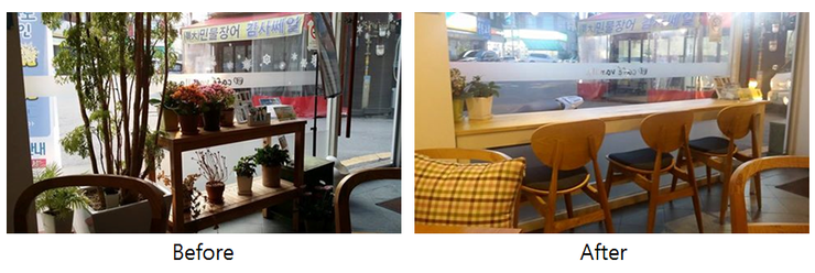긴 테이블을 하나 더 제작 구매했다. 여름에 빙수를 시작하게 되면 회전율이 떨어질 것을 대비한 실행이었다. 다른 창가에 화분과 기타 물품을 놓은 공간이 있었다. 그쪽에 긴 테이블을 맞춤 제작해서 배치했다. 의자도 좋은 걸로 샀다. 덕분에 테이블을 더 확보하고 미관상으로도 더 아름다운 카페가 되었다. 실제 회전율도 늘었다.