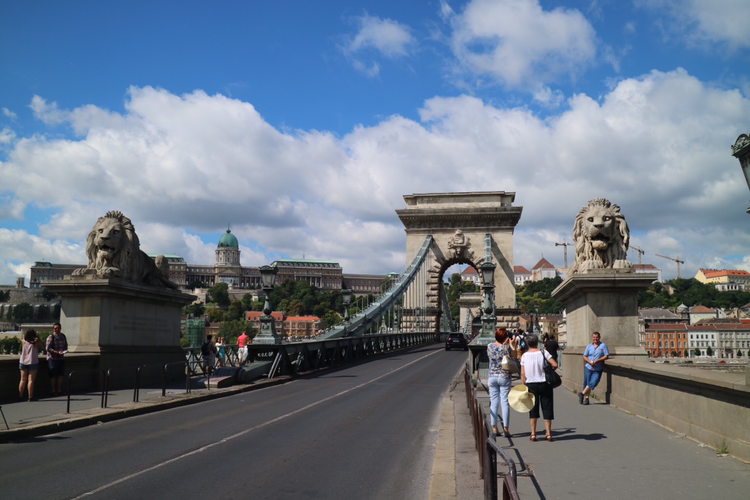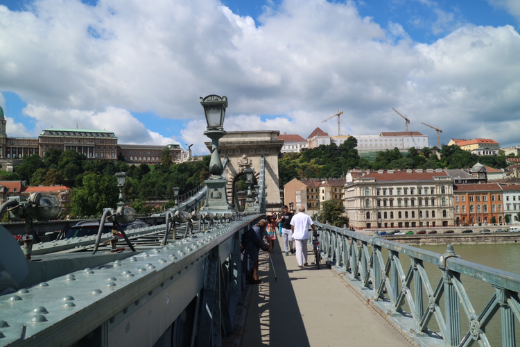 세체니 다리를 건넌다. 멀리서 봤을 때는 뜨거운 햇살에 더울 것 같았는데 거대한 다리의 구조물들이 그늘을 만들어주고 강바람이 불어 시원했다. 기분좋게 다리 위를 걷는다. 세체니 다리는 영화 <글루미 선데이>의 주요 장면에 나온다고 하는데 영화를 챙겨 봐야겠다. 하늘 위로 지나가는 뭉게 구름이 세체니 다리 그리고 도나우 강과 멋진 조화를 이룬다. 다리를 건너면 부다 왕궁으로 올라가는 케이블카가 있다.