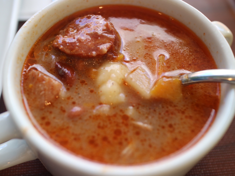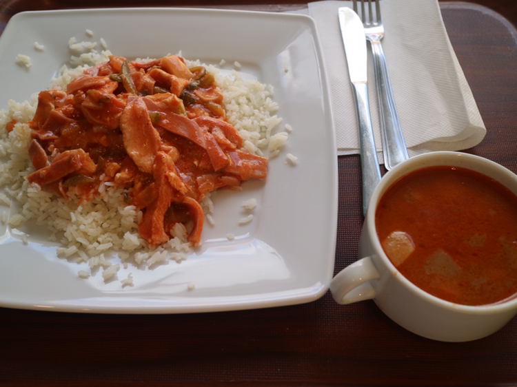 배가 고파진 걸 보니 점심 때가 되었나 보다. 궁전을 내려가서 페스트 지구에 가서 점심을 먹을까 하다 가까운 곳에서 먹기로 한다. 밥을 먹으며 더위도 식히고 천천히 내려가고 싶은 마음에서이다. 사람들이 몰려있는 레스트랑으로 향한다. 셀프 레스토랑이라 선택한 음식을 달라고 해서 쟁반에 담고 가격을 지불하면 된다. 나는 덮밥 종류와 수프 그리고 필스너 맥주를 주문했다. 우리나라와 비슷한 입맛이라는 이야기를 들었는데 그래서인지 덮밥이 입맛에 맞았다. 함께 주문한 수프는 구아슈 수프라고 해서 소고기와 파프리카, 몇몇 야채를 넣고 끊인 수프이다. 사실 다른 나라에서도 비슷한 수프를 먹어봐서 굉장히 짤 것으로 생각했는데 전혀 짜지 않고 맛있었다.