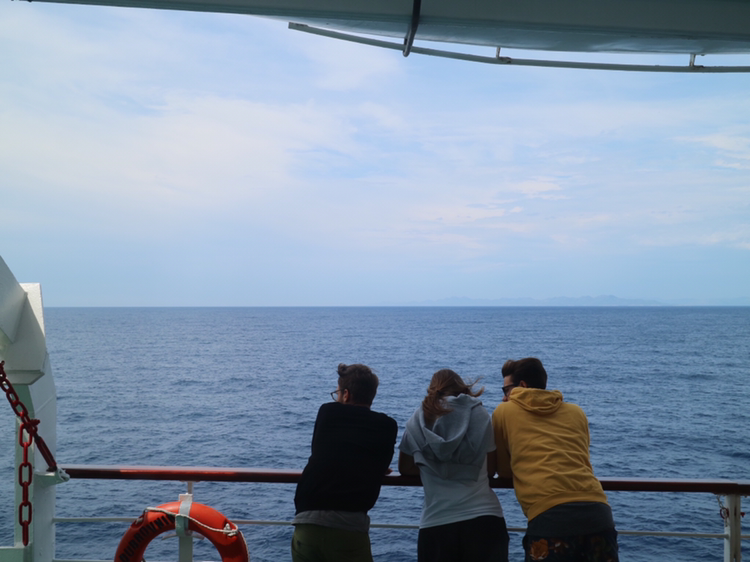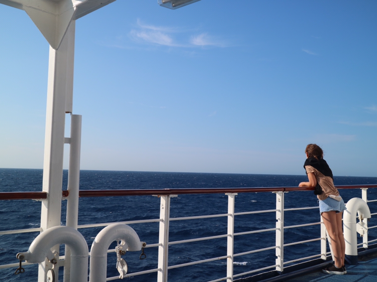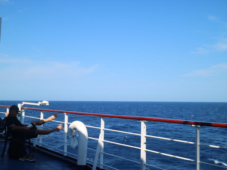 외부 갑판으로 나가봐야겠다. 바다를 함께 바라보는 사람들의 모습이 아름답다. 바다를 감상하며 여행하는 것은 참 낭만적인 것 같다. '같은 배'를 탔다는 공동체 의식이 자연스럽게 부여되고 동시에 드넓은 바다와 같이 내 마음이 넓어지는 것만 같다. 이를 함께 나누는 건 낭만이다.