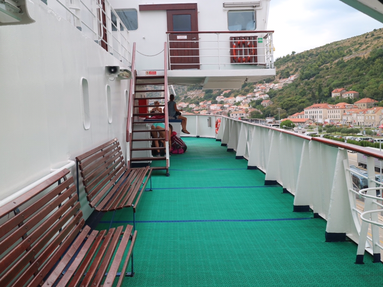 드디어 출항이다. 나는 함미로 나가 멀어지는 두브로브니크를 바라봤다. 스크류가 힘차게 바다를 가르며 배를 전진하게 한다. 함미에서는 익숙한 출항의 모습이 펼쳐진다. 내가 탄 배보다 훨씬 큰 크루즈도 보인다. 여행객들이 함께 출항의 설렘을 나눈다. 여기저기에서 웃음소리가 들린다. Deck에는 그냥 바닥에 앉은 사람들이 많아졌다. 배가 고파진 나는 배에 오르기 전 사둔 샌드위치를 우적우적 씹는다. 아침에도 빵을 먹었지만 이젠 익숙해졌다.
