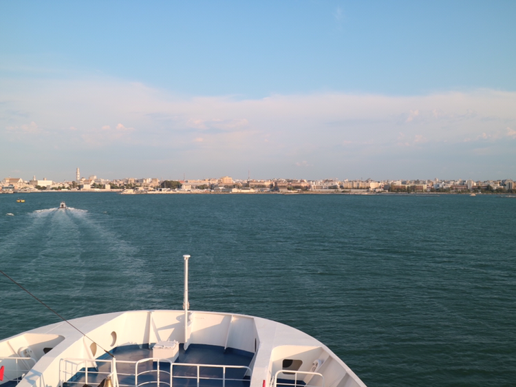 아드리아 해를 건너 드디어 이탈리아 땅이 보인다. 함수에 가서 배에서 만난 일본인 친구 타쿠와 이야기를 나누던 중 멀리 새로운 영토가 보였다. 이탈리아다. 입항이 가까워지자 함수에 사람이 많아졌다. 타쿠와 이런저런 이야기를 오랫동안 나눴는데 옆에서 우리 이야기를 듣던 캐나다에서 온 여자가 말을 걸었다. 타쿠가 캐나다에 살고 있다고 하니 반가워서 말을 걸었다고 했다. 선생님인 그녀는 방학을 맞아 휴가를 왔다며 반가워했다. 이태리 음식 이야기가 나오자 그녀는 더 이상 참을 수 없다며 빨리 먹고 싶다며 말을 이었다. 어느새 바리의 땅과 건물들이 눈 앞에 펼쳐진다. 새로운 나라, 새로운 도시 그리고 맛있는 이태리 음식이 기대된다.
