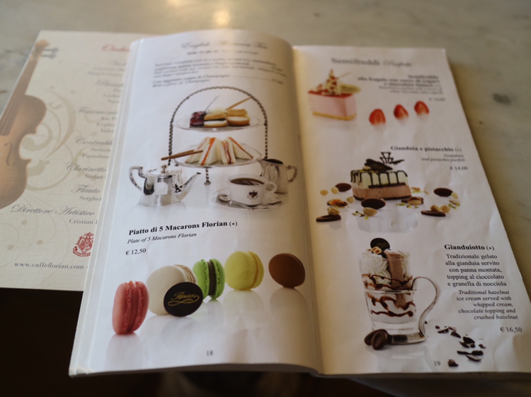 산 마르코 광장에는 유명한 카페가 있다. 1720년에 문을 연 플로리안 카페는 산 마르코 광장이 생기기 전에 문을 열었다. 300년 가까운 역사를 자랑하는 카페이다. 유럽을 대표하는 문학가들도 자주 왔고 카사노바가 이곳에서 선수 기질을 발휘했다고도 한다. 나는 산 마르코 광장을 한 바퀴 돈 후 카페 안으로 들어갔다. 오래된 듯 보이면서도 고풍스러운 내부 인테리어가 역사를 말해주는 듯하다.