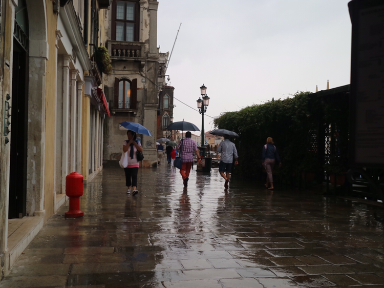 비 오는 날은 곤돌라를 운영하지 않을 것 같았는데 우의를 입고 운행하는 몇몇 곤돌라가 보인다. 승객들은 우산을 쓰고 비 오는 베네치아를 감상한다. 비가 오면 사람들의 발걸음이 느려진다. 물론 우산을 쓴 사람의 경우이다. 나와 같이 천천히 빗소리를 들으며 비 오는 거리를 감상하며 걷는다. 평소보다는 깊은 생각에 잠긴듯한 사람들을 보는 것도 재미있다. 나도 마음을 가라앉히고 여유를 가져서 좋다. 천천히 늑장 부리다가 저녁에 기차에 오르기만 하면 된다.