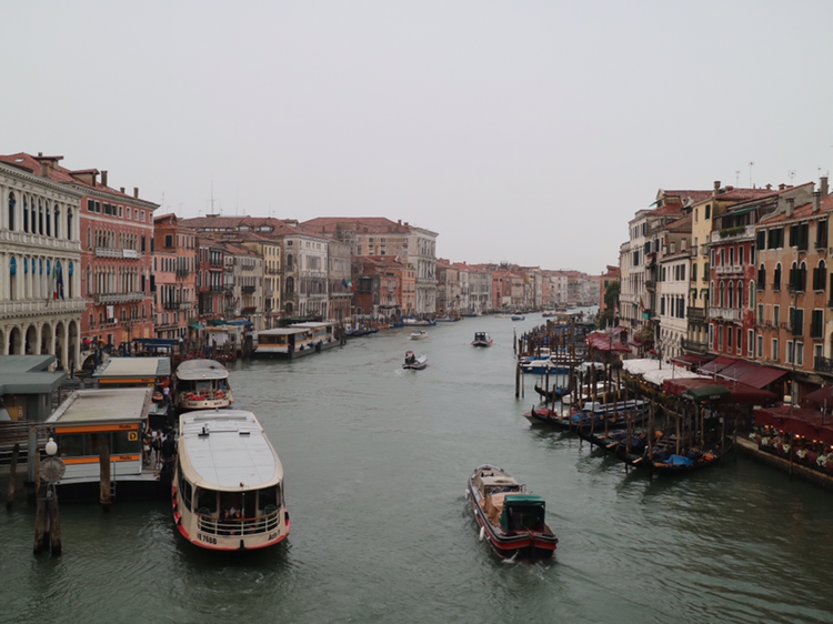 리알토 다리 근처에 있는 카페에 앉았다. 물의 도시 베네치아에 비가 내리는 모습이 운치가 있다. 카페에 앉아 커피 한 잔과 함께 비 오는 소리를 듣는다. 지나가는 사람들을 보며 비 오는 거리를 바라본다. 마음이 가라앉으며 차분해지는 느낌이다. 워낙 관광객이 많아서 한편으로는 이런 모습이 어색하기도 하지만 비 오는 분위기가 좋다.