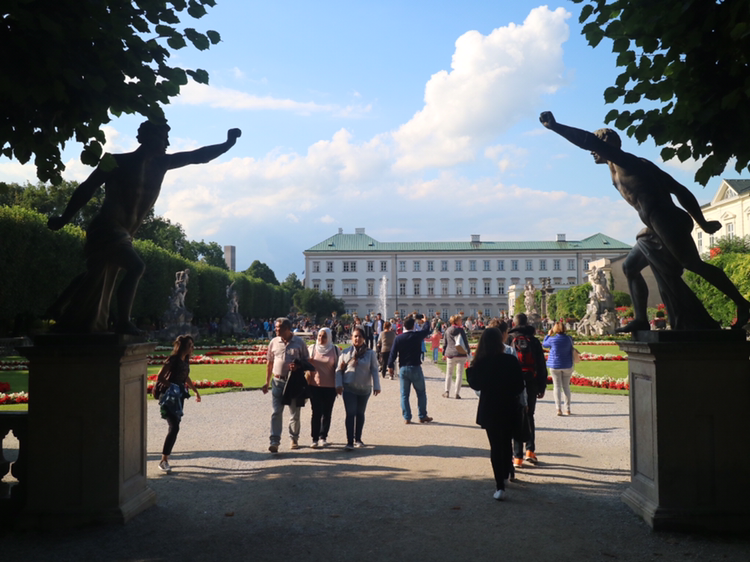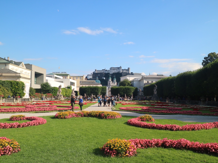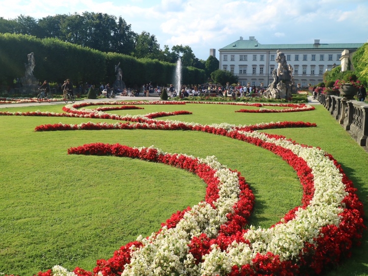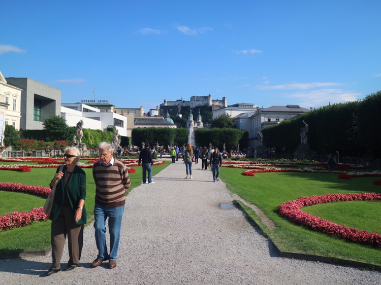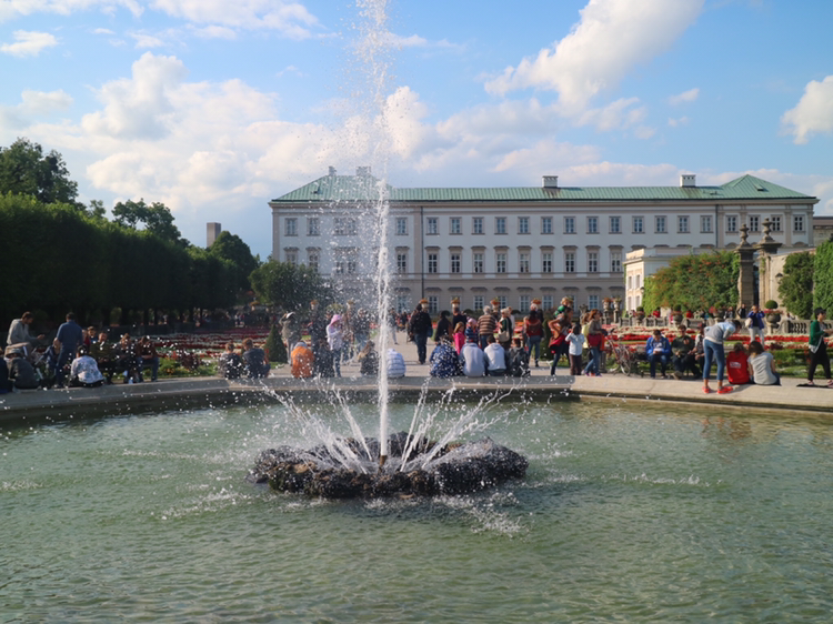 숙소로 가는 길에 맑게 개인 잘자흐 강과 미라벨 궁전의 정원이 분위기가 정말 상큼하다. 미라벨 정원은 영화 <사운드 오브 뮤직>에서 마리아가 아이들과 함께 '도레미 송'을 부르는 유명한 장소이다. 참 아름답다.