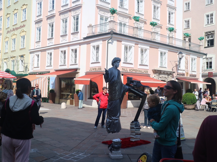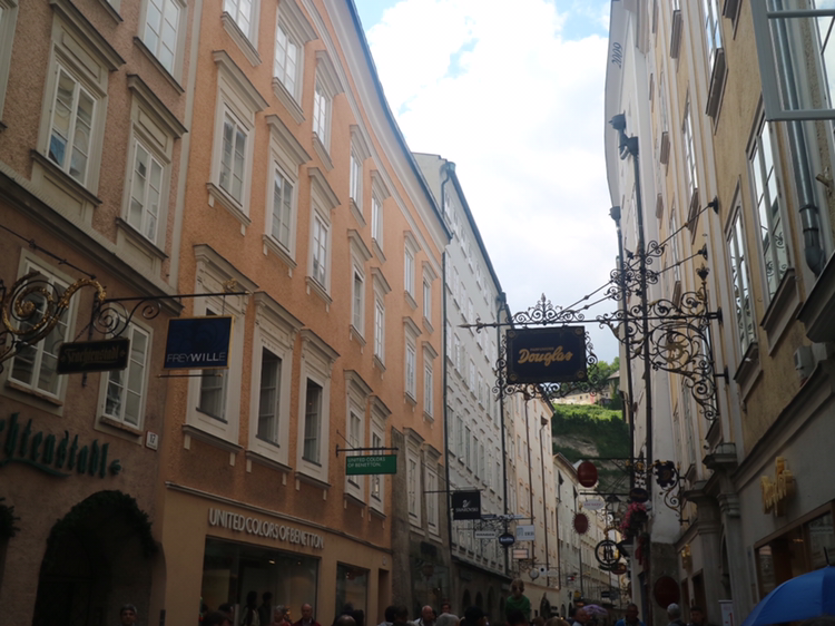동유럽을 크게 한 바퀴 돌고 다시 독일로 가기 전 오스트리아 잘츠부르크에 들렀다. 오스트리아는 여행 초, 중반에 비엔나를 방문했으니 두 번째 방문한 셈이다. 잘츠부르크는 이름만으로도 왠지 낭만적이다. 잘츠부르크는 모차르트가 태어난 음악의 도시이다. 그래서 나는 낭만적이라고 느끼고 있다. 당연히 모차르트가 살던 곳을 찾았다. 먼저 모차르트와 모차르트 가족이 살던 모차르트의 집(Mozart Wohnhaus)을 발견했다. 모차르트가 쓰던 악기와 유품을 전시하고 있다. 사진 촬영은 금지하고 있어서 입구에서 기념사진 몇 장을 찍어본다.