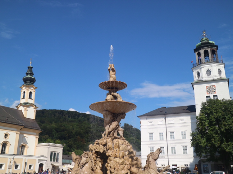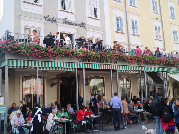 대성당 테라스로 나오니 확 트인 전경이 내 마음까지 시원하게 해준다. 시원함을 이어가기 위해 레지던츠 광장으로 나왔다. 잘츠부르크에서 가장 넓은 광장으로 17세기 바로크 양식의 분수대가 가장 먼저 눈에 띈다. 광장 한편에는 거리 공연을 하는 사람들이 몇몇 있고 한쪽 모퉁이에는 많은 사람들로 붐비는 카페가 보인다. 이 카페는 1703년에 문을 연 전통 카페다. 오스트리아의 음악 거정 카라얀이 자주 찾기도 했단다. 그냥 지나칠 수 없어 나도 커피 한 잔의 여유를 부린다. 오스트리아 여행도 이 달콤한 커피처럼 아주 달콤하다.