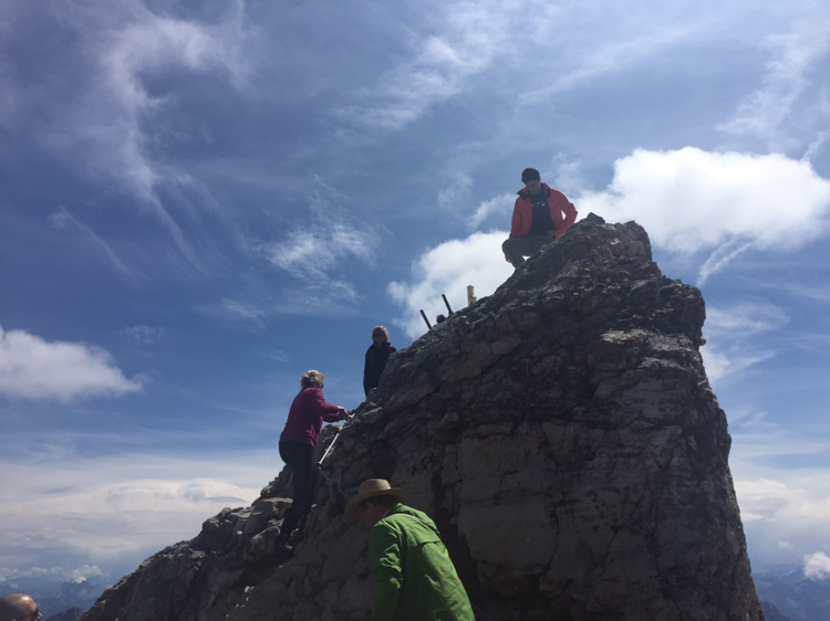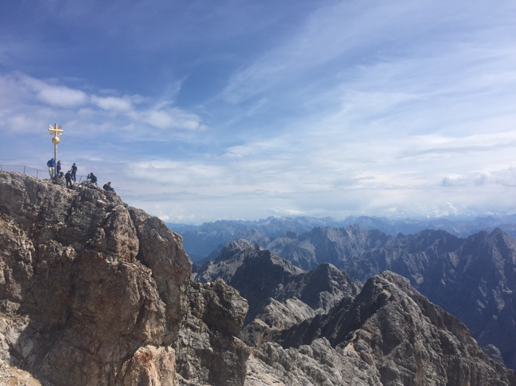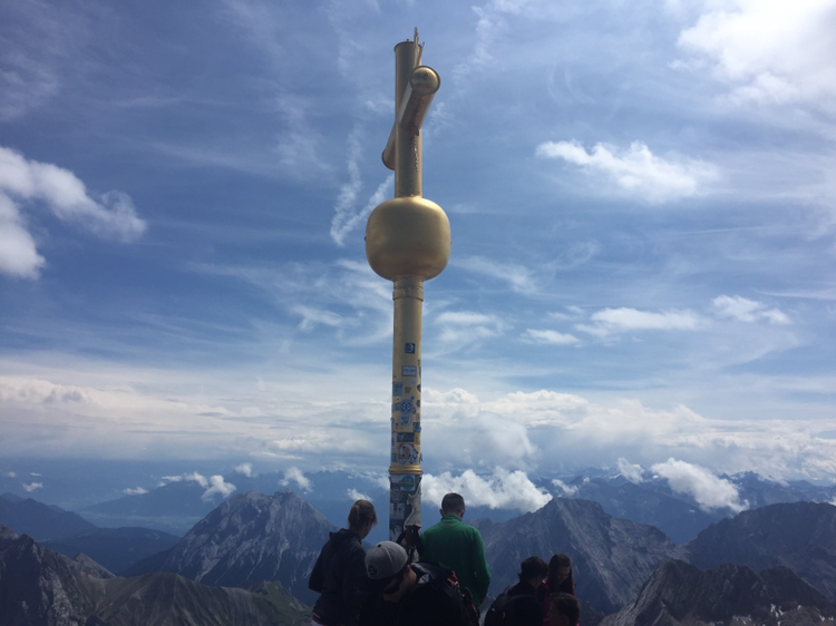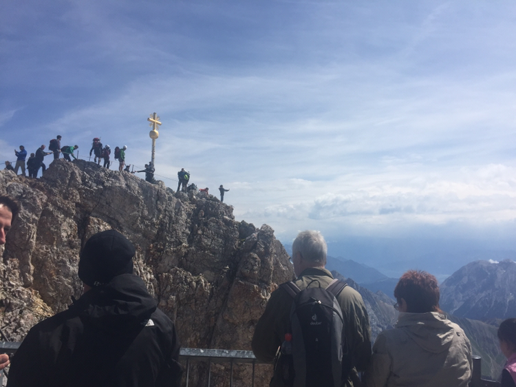 나는 독일의 정상에 올랐다. 후들거리는 다리를 붙잡고 도전했다. 정말 기어가듯이 올랐다. 정상에는 황금빛 십자가가 독일의 정상을 상징하고 있다. 그 옆에서 나는 한껏 긴장한 표정으로 사진을 찍었다. 함께 힘겹게 올라간 관관객들이 서로 사진을 찍어줬다. 이번 여행 중 가장 긴장됐던 순간이었다. 하지만 독일의 정상에 올랐다는 뿌듯함이 곧 올라왔다. 정상에서 깊게 숨을 들이켠다.