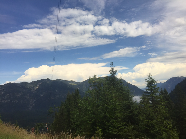 드디어 산악열차가 도착했고 독일의 정상을 향해 출발한다. 약 1시간 정도 올라가며 좌우로 멋진 풍경이 펼쳐진다. 높은 산봉우리와 초원 그리고 한적한 집들이 보인다. 다행히 나는 창가 쪽 자리에 앉아 천천히 풍경을 감상하며 올라갔다.