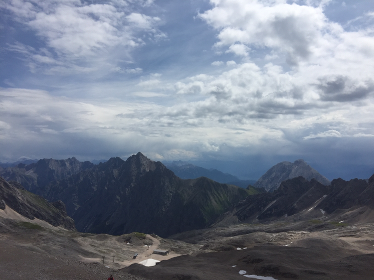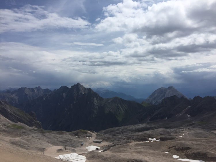 산악열차에서 내린 곳은 추크 슈피츠 플라트라고 불리는 빙하 고원이다. 정상까지는 케이블카를 타고 더 올라가야 한다. 내리자마자 펼쳐지는 독일의 산맥들이 자연의 광활함을 말해준다. 그림 같은 풍경이 나를 거대하게 압도한다. 겨울에는 스키장으로 활용된다는 이곳은 아직 시즌이 아니라서 한쪽에 눈썰매 체험만 할 수 있게 해놨다. 몇몇 관광객들이 아이들과 함께 눈썰매를 타본다.