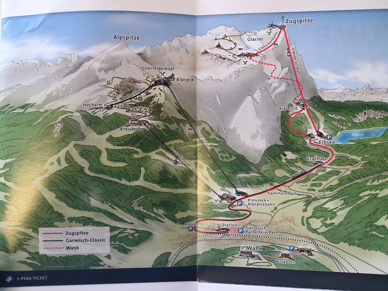 뮌헨에 도착한 둘째 날, 나는 산에 갈 채비를 했다. 바람막이 상의를 꺼내 입고 숙소를 나선다. 나는 뮌헨 중앙역으로 가서 기차에서 먹을 샌드위치와 과일 몇 개를 골랐다. 유레일 패스에 어려운 독일 지명을 옮겨 적는다. 오늘 향할 곳은 가르미슈파르텐키르헨이다. 원래는 가르미슈와 파르텐기르헨이라는 두 개의 작은 도시가 서로 웃하고 있었다. 그런데 1936년 히틀러가 제4회 동계 올림픽을 개최하기 위해 하나로 합쳐버렸다고 한다. 이곳은 독일에서 가장 높은 산봉우리 추크슈피체가 있는 곳이다. 독일의 정상에 오를 수 있다.