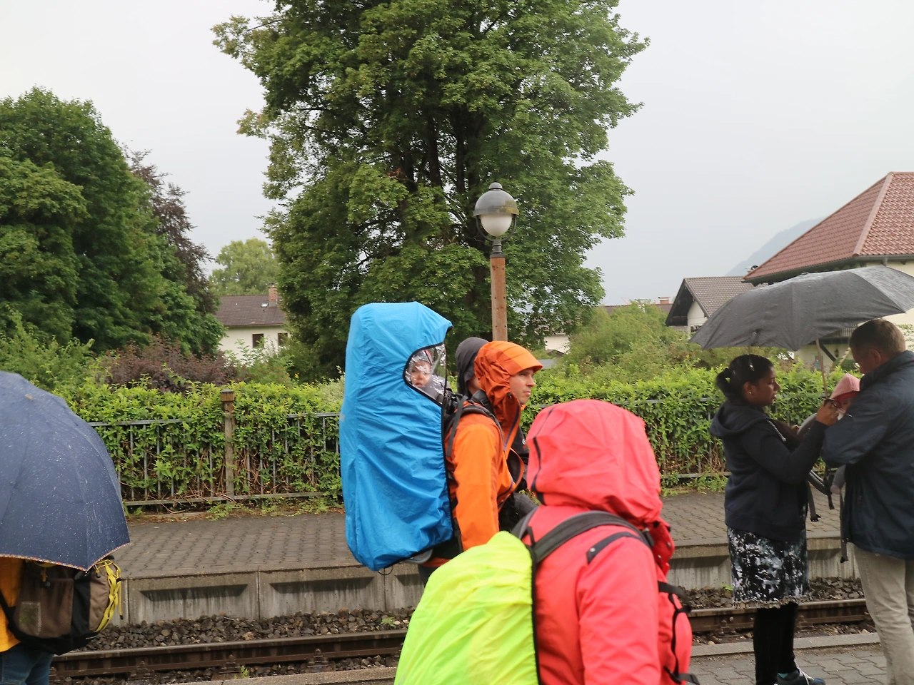 뮌헨 중앙역에서 출발할 때는 날씨가 괜찮았다. 그런데 가는 길에 날씨가 흐려지더니 도착하니 비가 부슬부슬 내린다. 가르미슈파르텐키르헨 역에 도착해서 등반열차 표를 끊었다. 궂은 날씨에도 여행객들이 꽤 많았다. 줄을 서서 산악열차 표를 사고 다시 열차를 기다린다. 갓난아기와 함께 온 부부가 옆에 있었는데 아기가 얼마나 예쁜지 구경하느라 기다리는 시간이 지루하지 않다.
