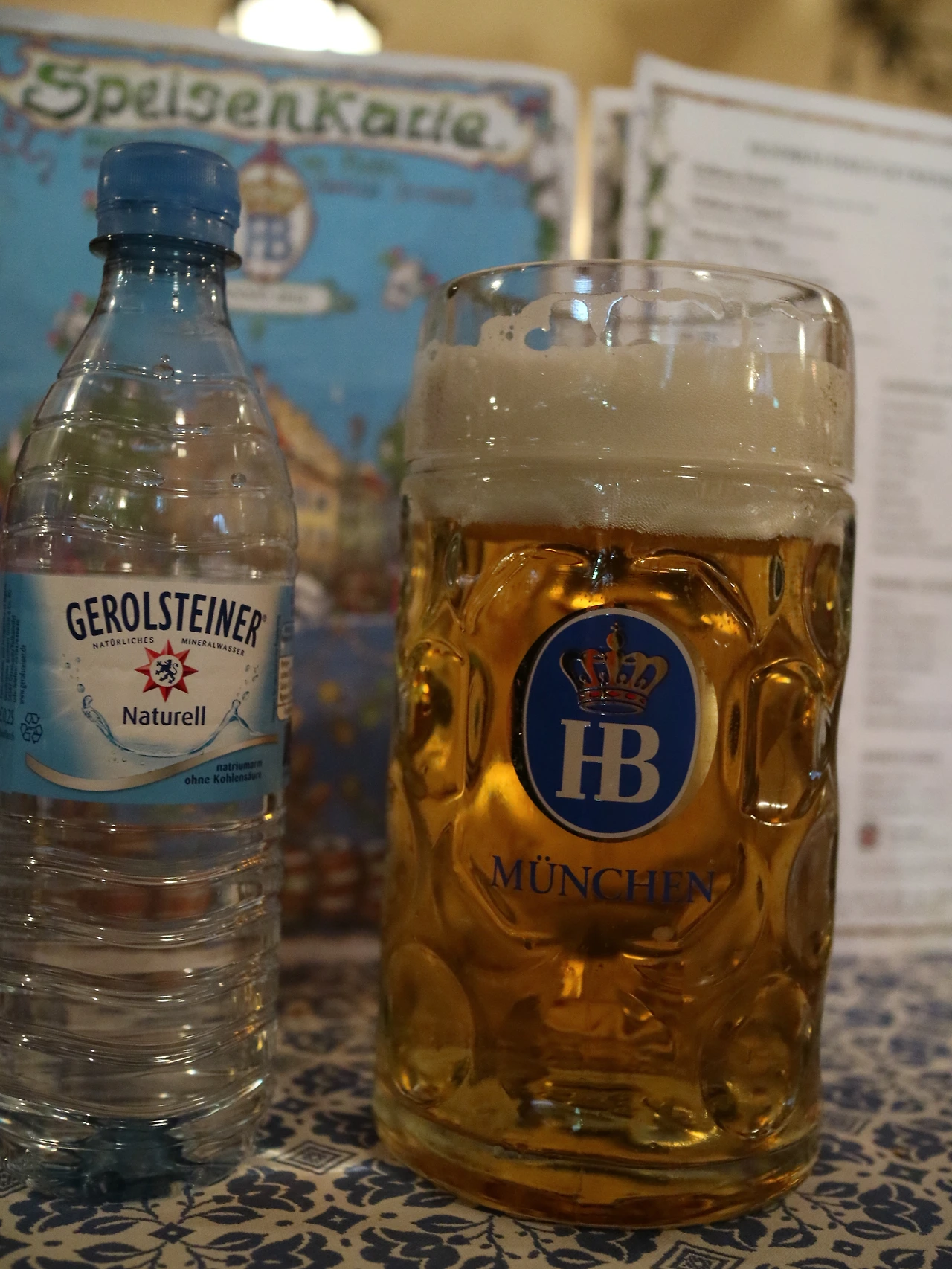 들어서자마자 시끌벅적하다. 이 넓은 곳에 정말 사람들로 꽉 차 있다. 이 안은 축제가 벌어지는 듯한 모습이다. 처음 만난 사이지만 여행객의 친근함으로 반갑게 인사를 나눴다. 맥주와 안주를 주문하고 이런저런 이야기를 나눈다. 여행객들이 나누는 그런 이야기들이다. 혼자 또는 누구와 여행을 왔는지와 어디를 가봤고 앞으로 어디를 갈 것인지 말이다. 주문한 1리터 맥주가 나왔다. 그 크기가 흥을 더 돋운다. 옆에 생수병을 갖다 대야 그 크기를 실감할 수 있다. 얼굴만 한 맥주잔을 부딪히며 건배하고 맥주를 들이켠다. 전통이 있는 양조장으로부터 나온 맥주의 맛은 환상적이다. 마치 내가 맥주 CF를 찍는 듯이 입에서 '캬~' 소리를 내고 있다.
