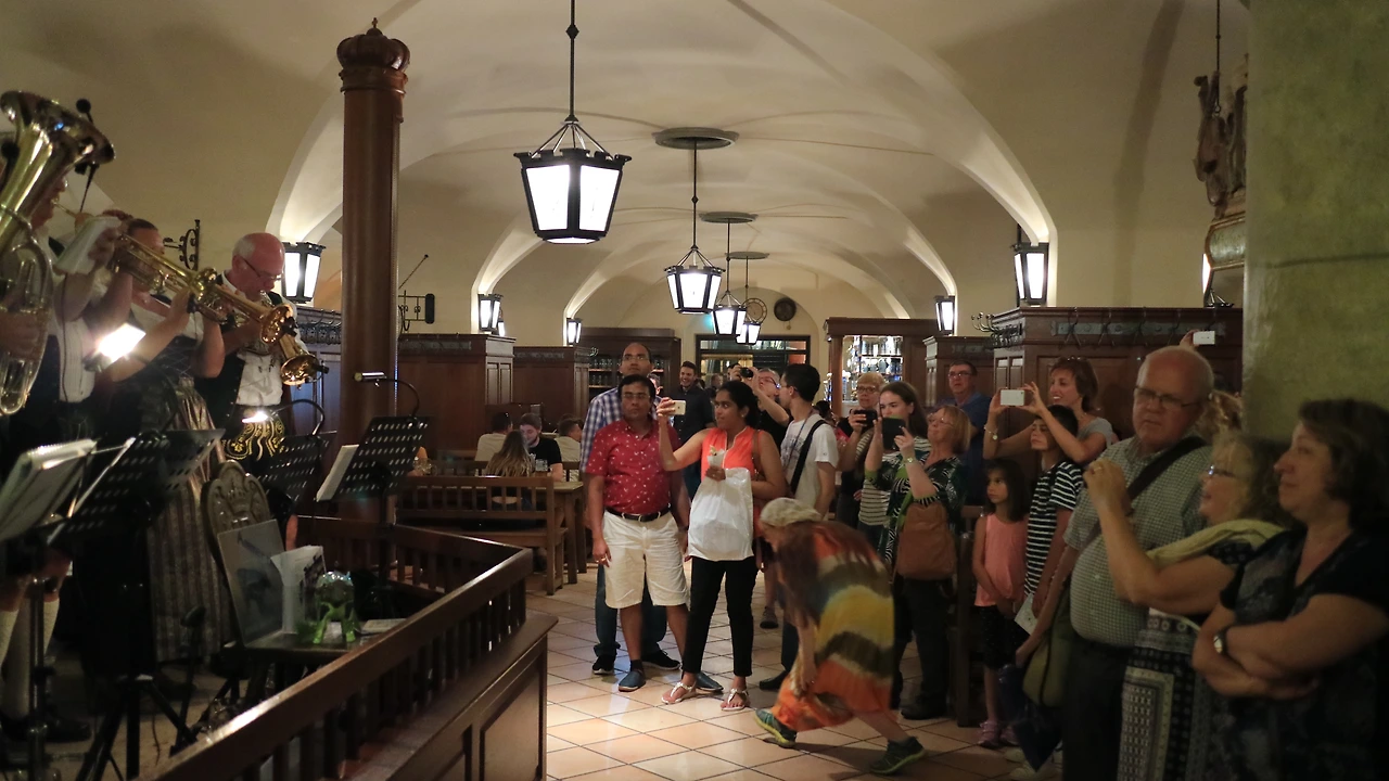 호프브로이 하우스 중간에는 하우스 밴드가 있다. 매일 저녁에 연주를 한다. 관광 안내책에 저녁 시간이 되면 밴드 연주에 맞춰 흥겹게 춤추는 사람이 있다고 했는데 정말 그랬다. 몇몇 사람들이 밴드 앞으로 나와 즐겁게 춤을 춘다.
