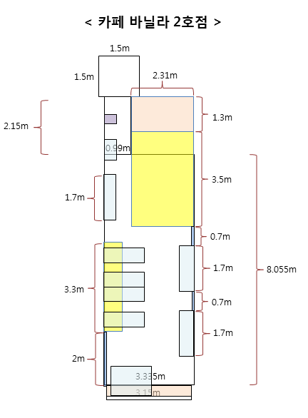 먼저 기존 점포 철거작업에 들어갔다. 철거는 전문업체를 통해 진행할 수 있고 면적과 폐기될 양을 고려해서 비용이 산정된다. 철거 후에는 인테리어 작업을 하면 된다. 인테리어 콘셉트는 1호점과 동일하다. 그래서 내가 콘셉트를 명확하게 해서 업체에 전달해야 했다. 더 주도적인 카페 공사를 위해 내가 직접 살펴봐야 할 부분이 많았다. 2호점은 1호점 대비 공간이 넓지 않다. 따라서 설계와 배치가 중요했다. 나는 컴퓨터 설계 프로그램 같은 것을 다룰 줄 모른다. 대신 나에겐 직장생활 6년간 단련된 파워포인트 실력이 있다. 그래서 나는 파워포인트로 도면을 작성했다. 인테리어 업체 사장님이 대단하다고 칭찬해주셨다. 공돌이의 강점을 발휘할 수 있어 기뻤다.
