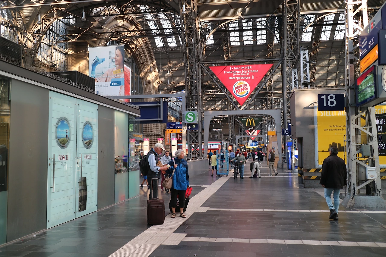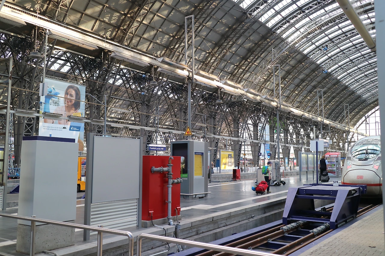 프랑크푸르트 중앙역에 도착해서 역 안을 바라본 모습 밖에서 바라본 프랑크푸르트 중앙역과 건너편의 카이저 스트리트
